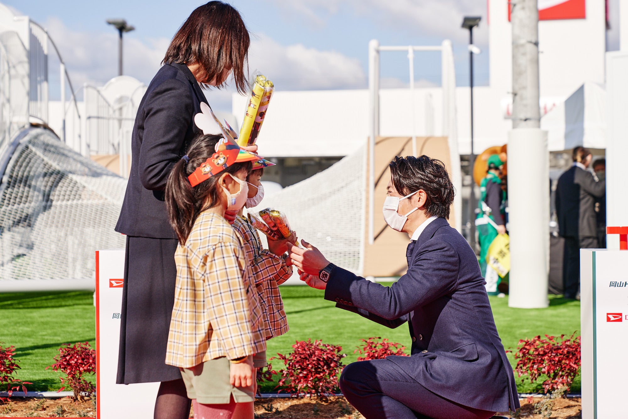 皆が白線の前で止まる中、ある一人の人物だけは気にせず走り続けます。他の選手や子どもから白い目で見られていることも気にせず、笑顔でゴールを迎えたのは・・・