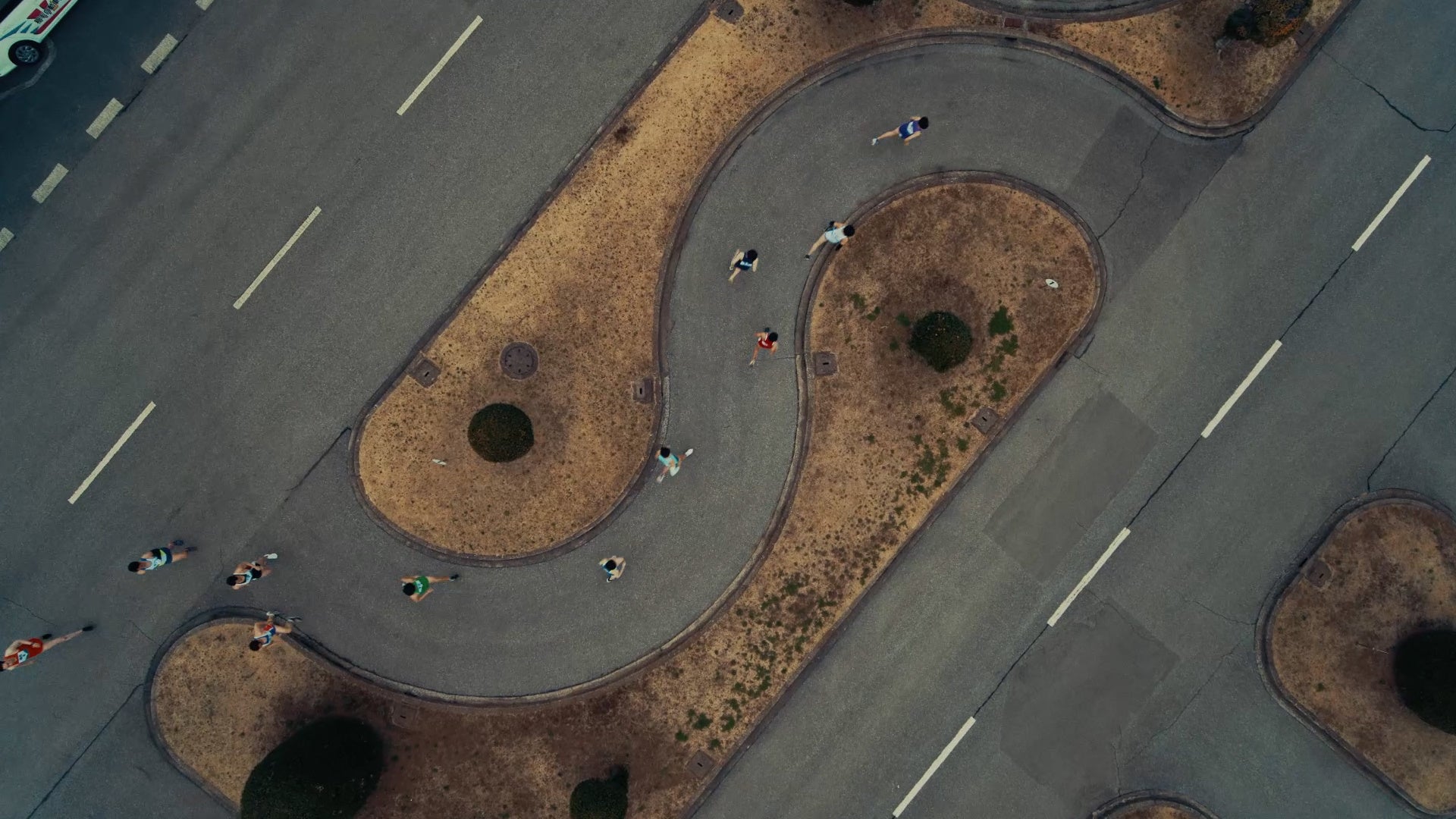 終盤、ラストスパートをかけるように選手たちは全力疾走しますが、ゴール寸前で横断歩道の交差点が見えてきます。多くの選手たちが速度を落とし、白線の前で足を止める中、唯一意外な行動をとる人がいます。その結末とは——。
