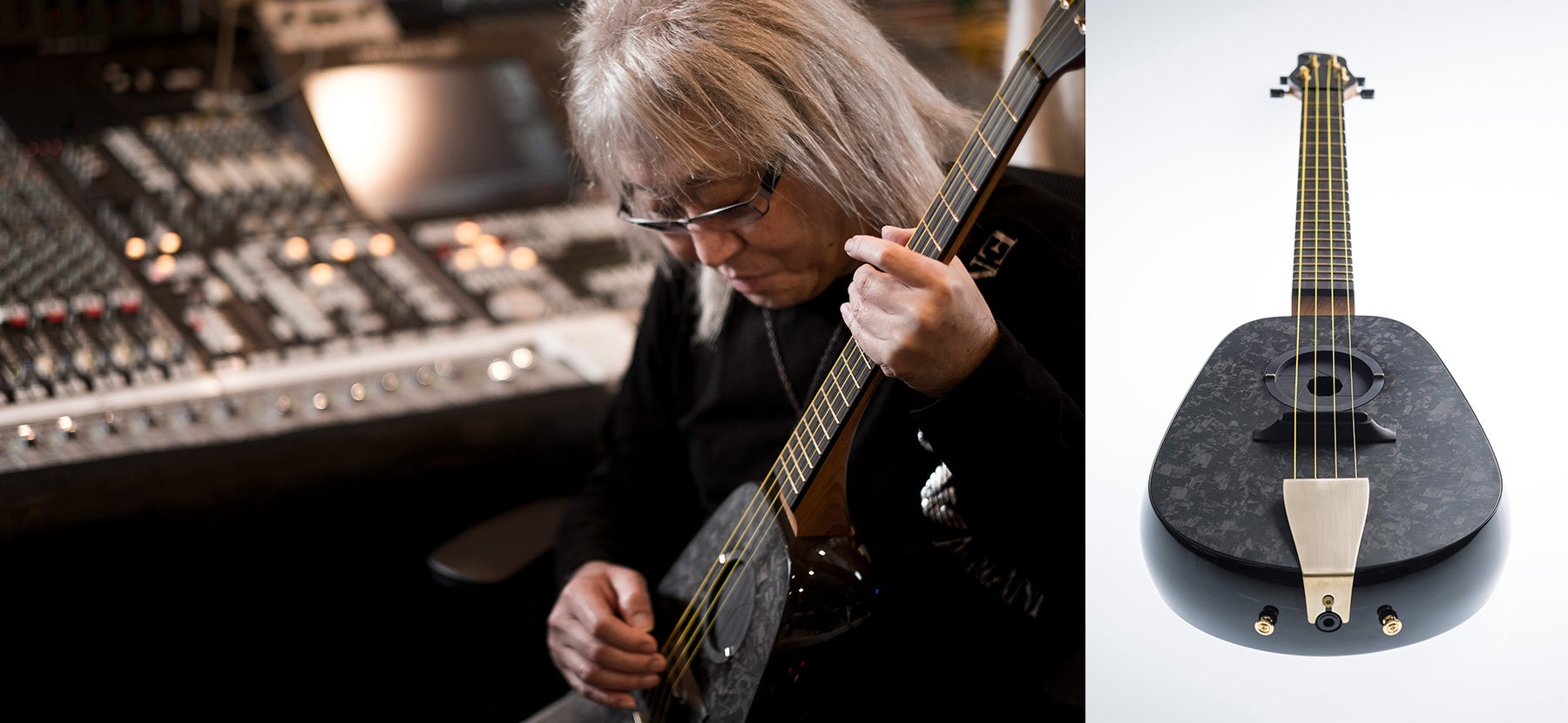 いままで楽器には使われていなかったカーボンという素材に出逢い、川井氏と何度も音質の評価を積み重ね生み出されたこの世に一つだけの楽器。アーティストと、創りたい音から楽器のカタチを考えるという新しい挑戦です。