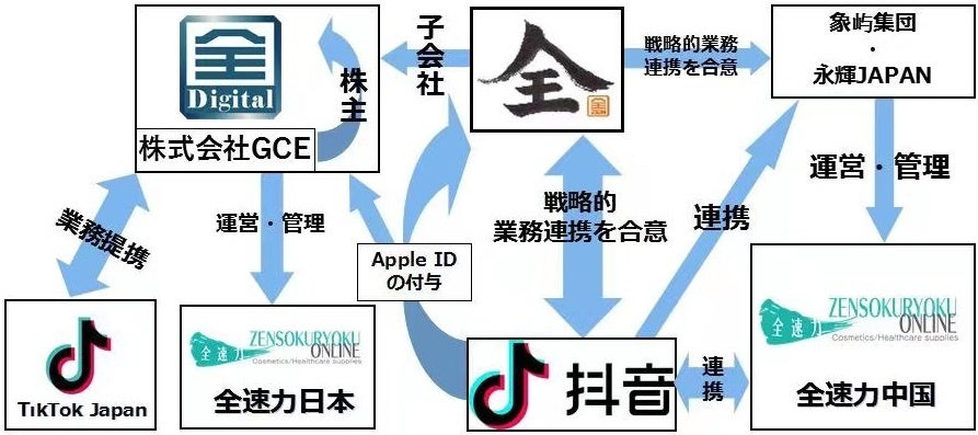 このたび、全株式会社は、中国の抖音/Douyin(中国版 TikTok、以下「抖音」)と戦略的業務連携を合意いたしました。また、中国最大級の物流グループである永辉超市股份有限公司の子会社の永輝JAPAN(以下「永輝グループ」)とも提携いたしました。これにより、全株式会社のEC サイト、旗艦店「全速力オンラインショップ」を通じて日本と中国の間で商品を容易かつ円滑に取り引き、流通可能となります。