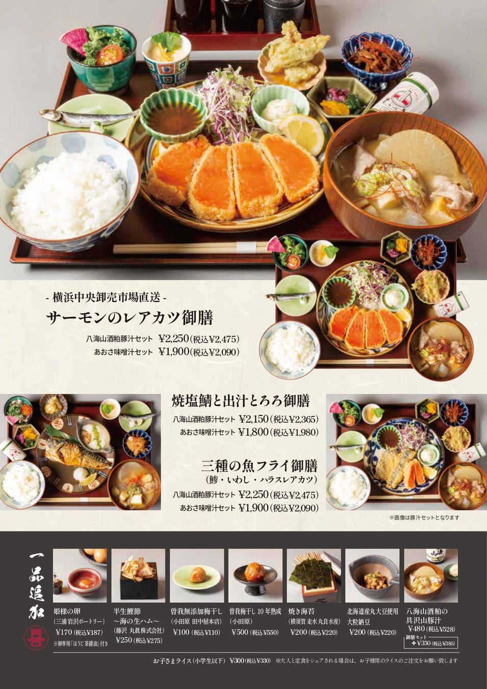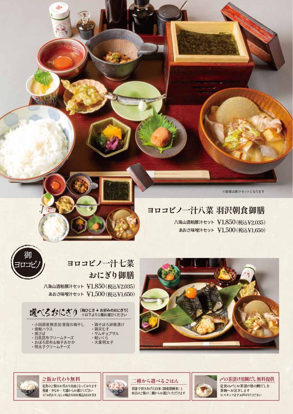 店名は『和食堂 ヨロコビノ』6種の多様な小鉢、黄金比率の自家製出汁と横浜産味噌で作る味噌汁、羽釜で炊くつや飯の食べ放題がつくワクワクする和食堂です。