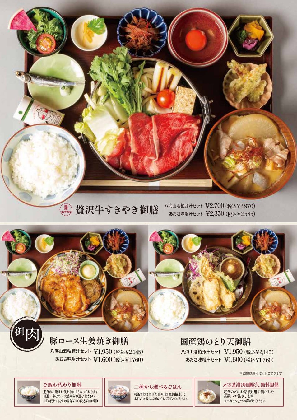 ②通常は、黄金比率出汁あおさの味噌汁が付きますがグレードアップで日本酒八海山の酒粕を使用した豚汁を御用意。これだけでも御飯が進みます
