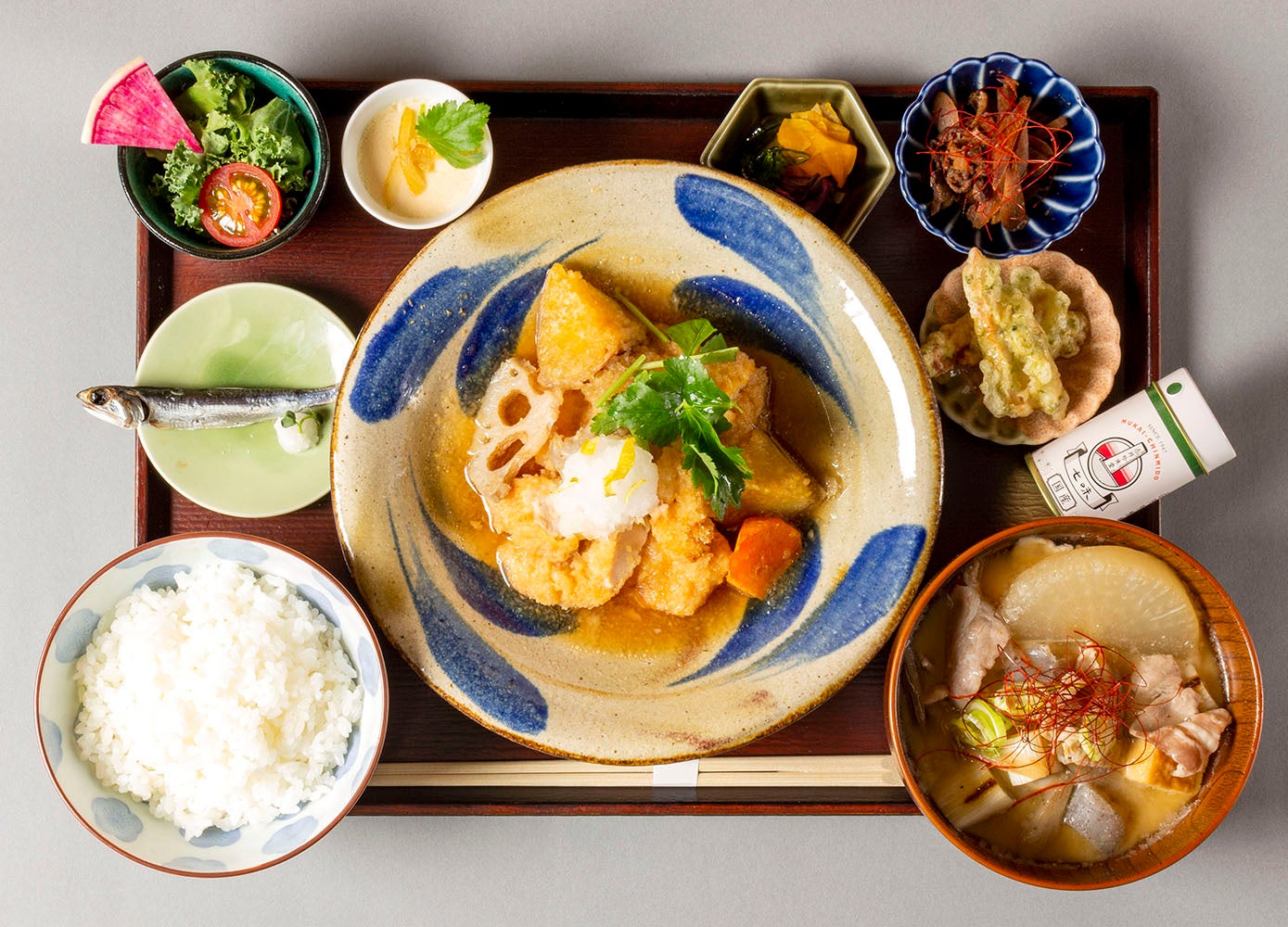 羽釜で炊いたその季節に美味しいお米を、『魚、肉、野菜』とこだわりの詰まったメインのお料理とワクワクする小鉢の数々で楽しむ贅沢な気分を味わえる和食堂です。