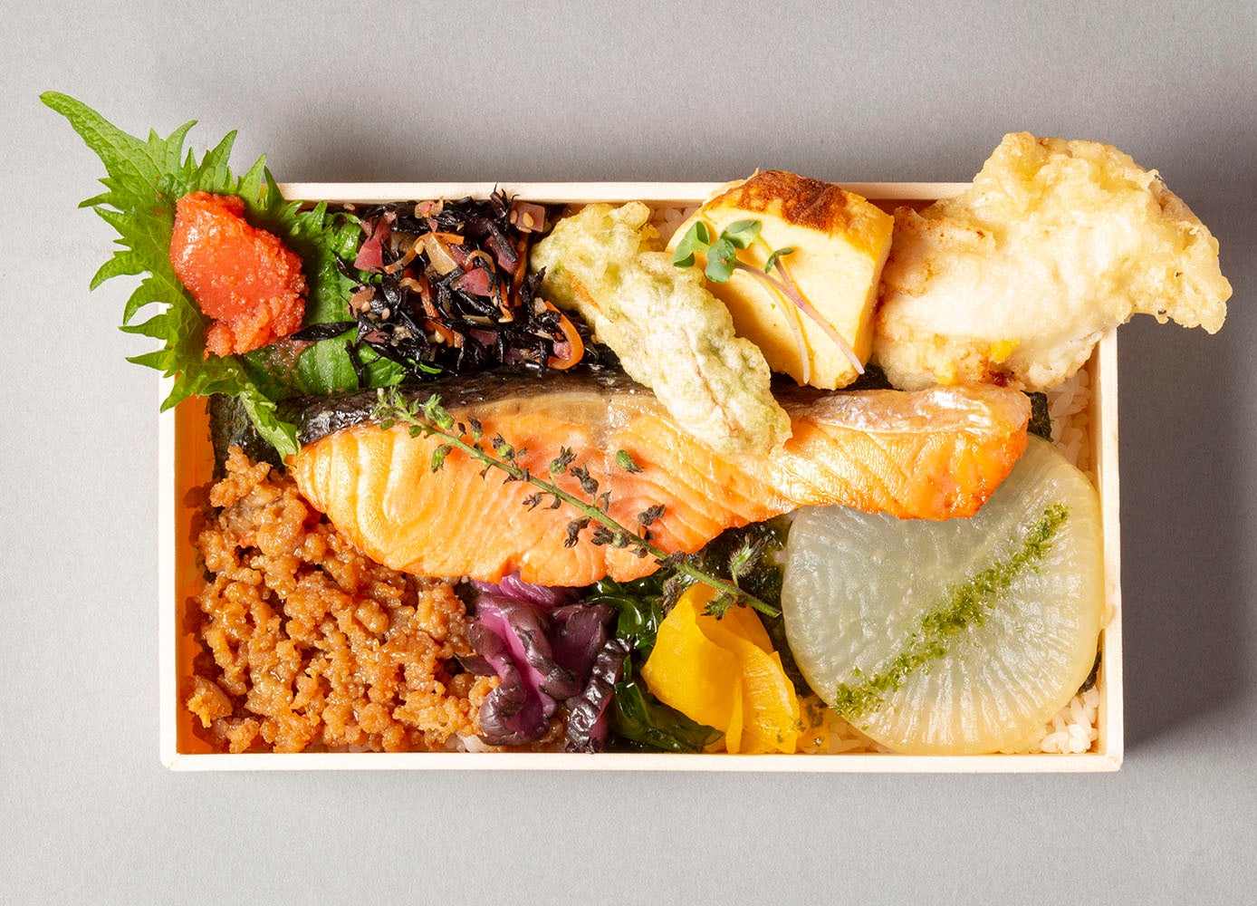 和食堂 ヨロコビノ ではご自宅や外出先でもワクワクする御膳が楽しめるようお弁当やこだわりおにぎりを御用意しております。
