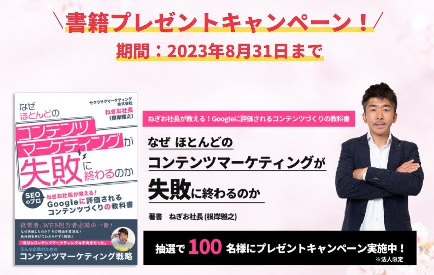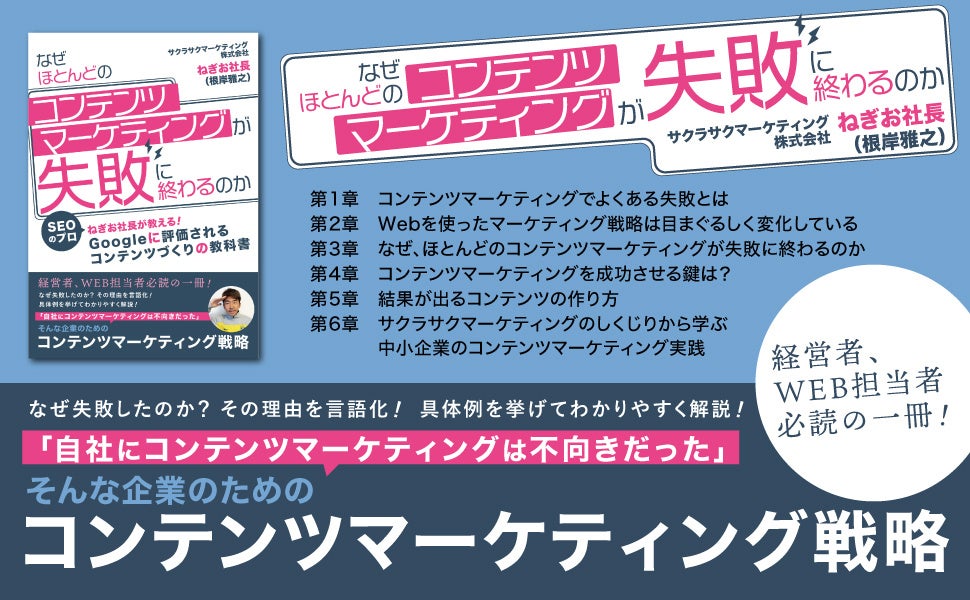 SEOのプロねぎお社長、初の書籍出版!「なぜほとんどのコンテンツマーケティングが失敗に終わるのか?」出版記念書籍プレゼントキャンペーン&特別セミナー開催のお知らせ