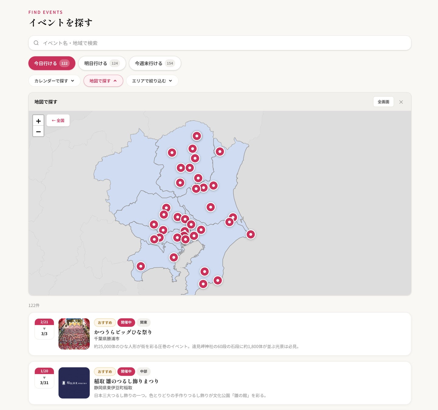 地図検索:全国のイベントを地図上に表示。近くのイベントを直感的に探せます