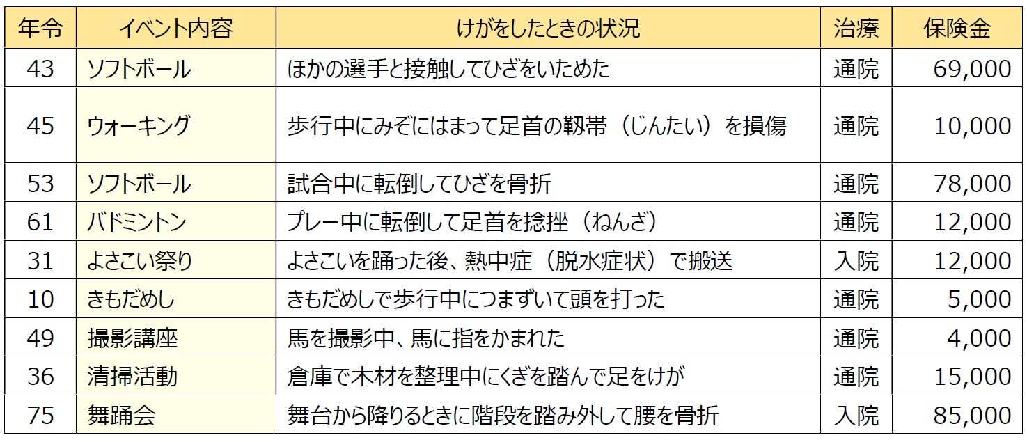 ◆レクリエーション傷害保険が適用された事例