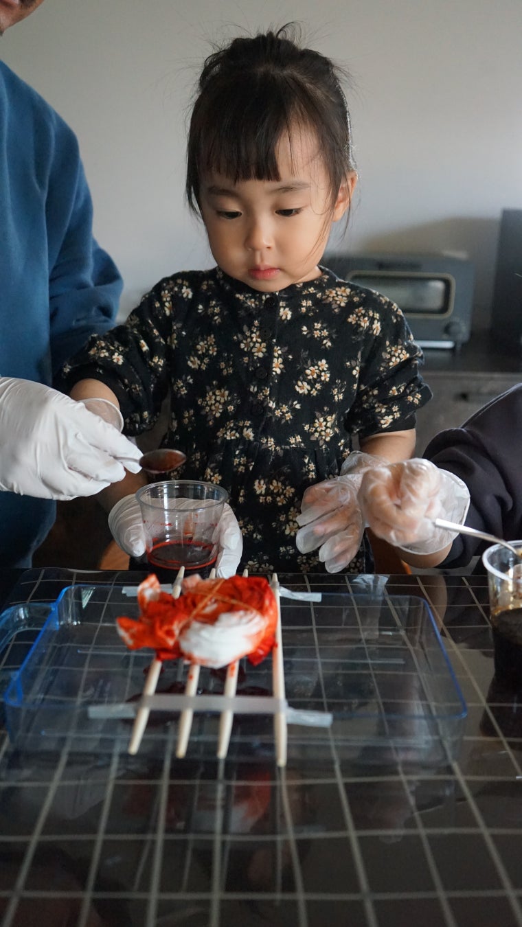 「家にある物で綺麗に染まりました。おうち遊びの時間や自由研究に良さそうです。」