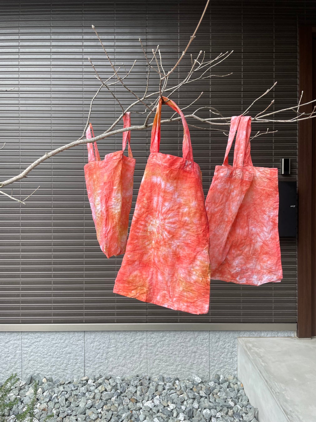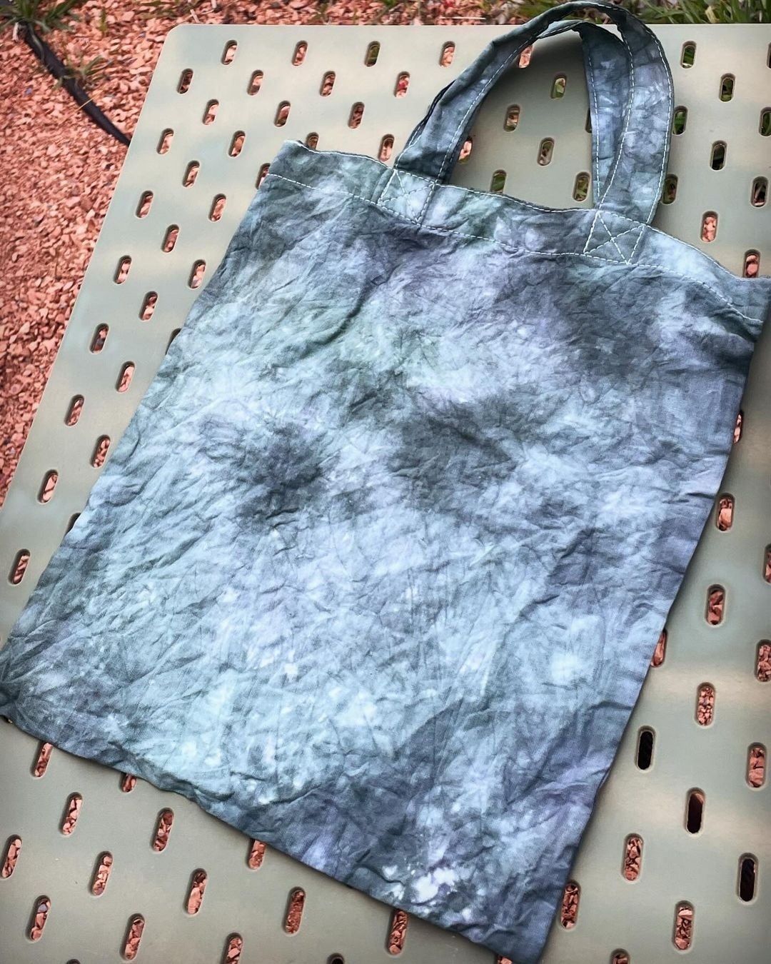 「親子でトートバッグを染めてみた。それぞれ性格が出て面白かった」