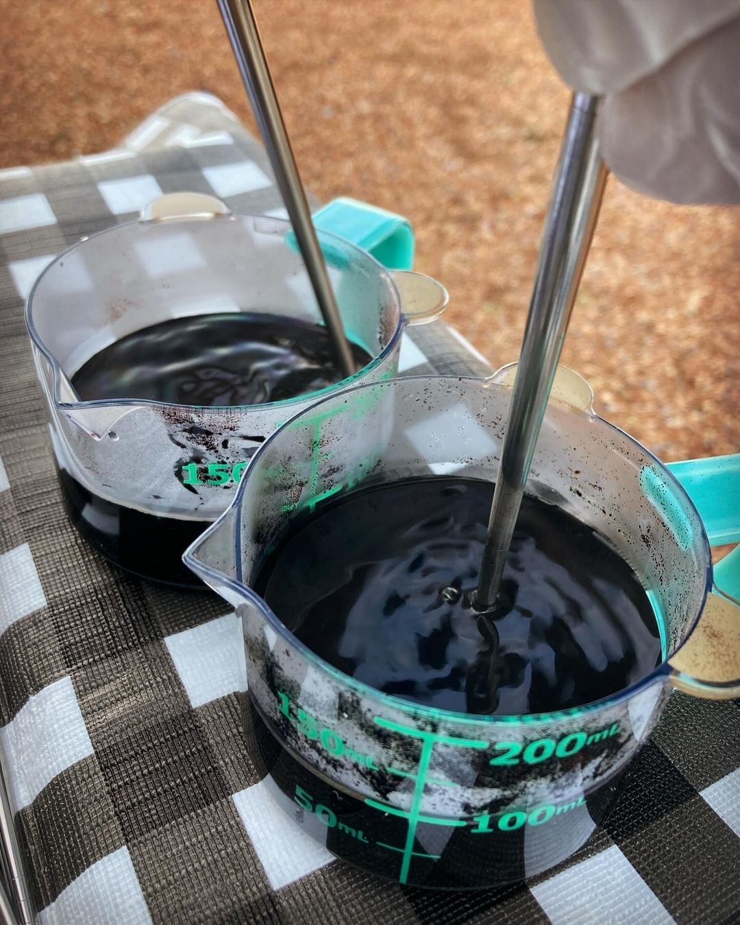 粉の染料と定着剤をお湯(給湯器温度60℃)で溶かします