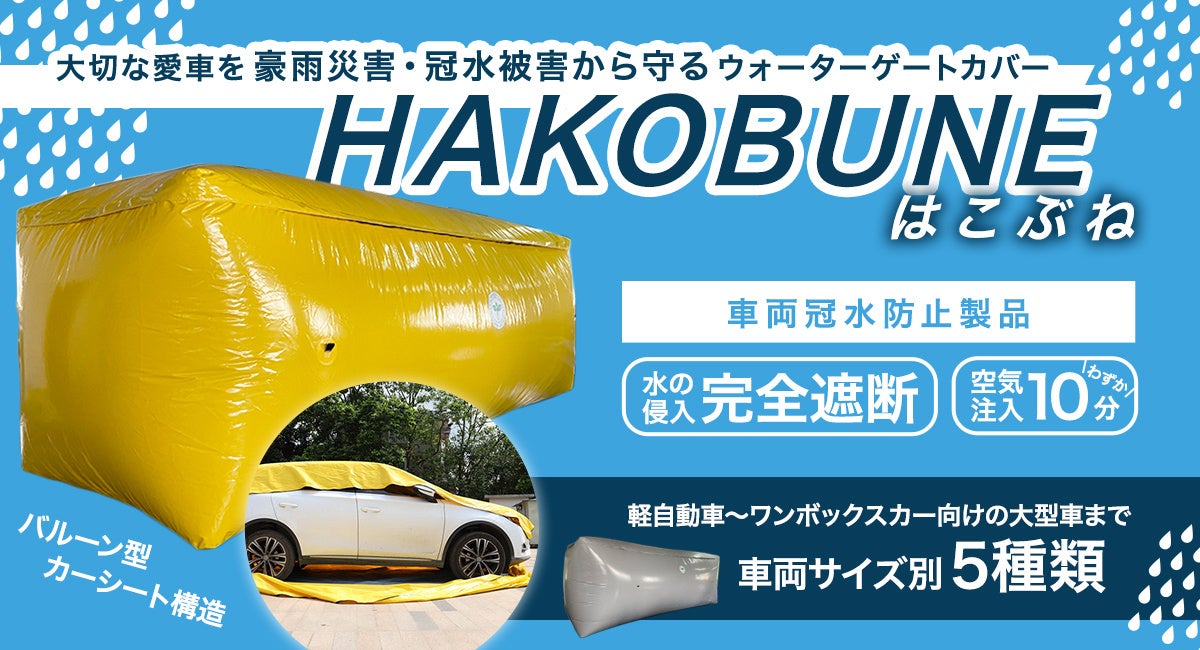 空気注入時間わずか10分で即利用可能!車両冠水防止製品「HAKOBUNE(はこぶね)」を、12/15(木)販売開始