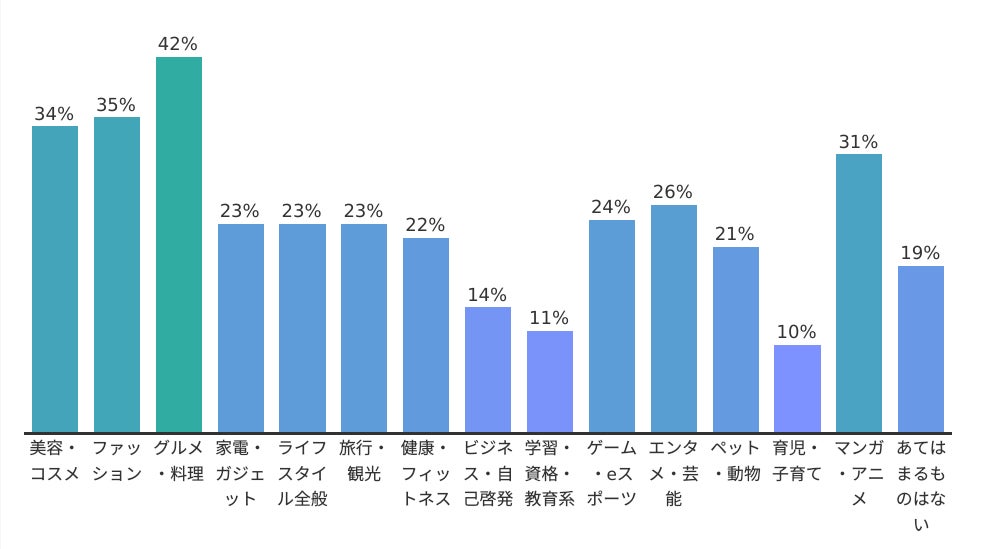 【人気ジャンル】 Z世代ではエンタメ・マンガ、ミドル層では実用性重視(料理・美容・ファッション)と世代間での違いも顕著。