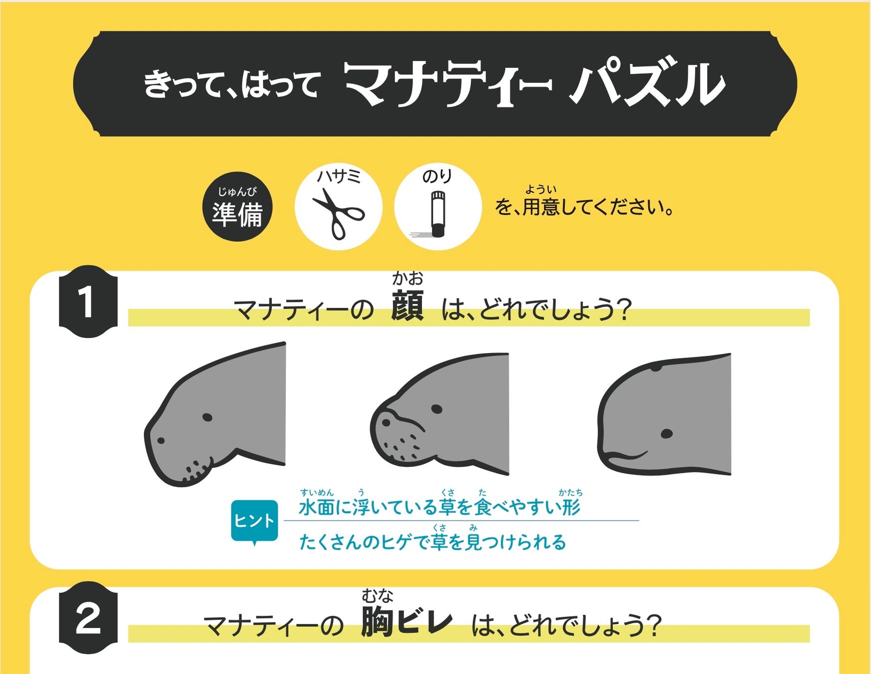 パズルを完成させることを通して、マナティーの体の特徴を学ぶことができる教材です。