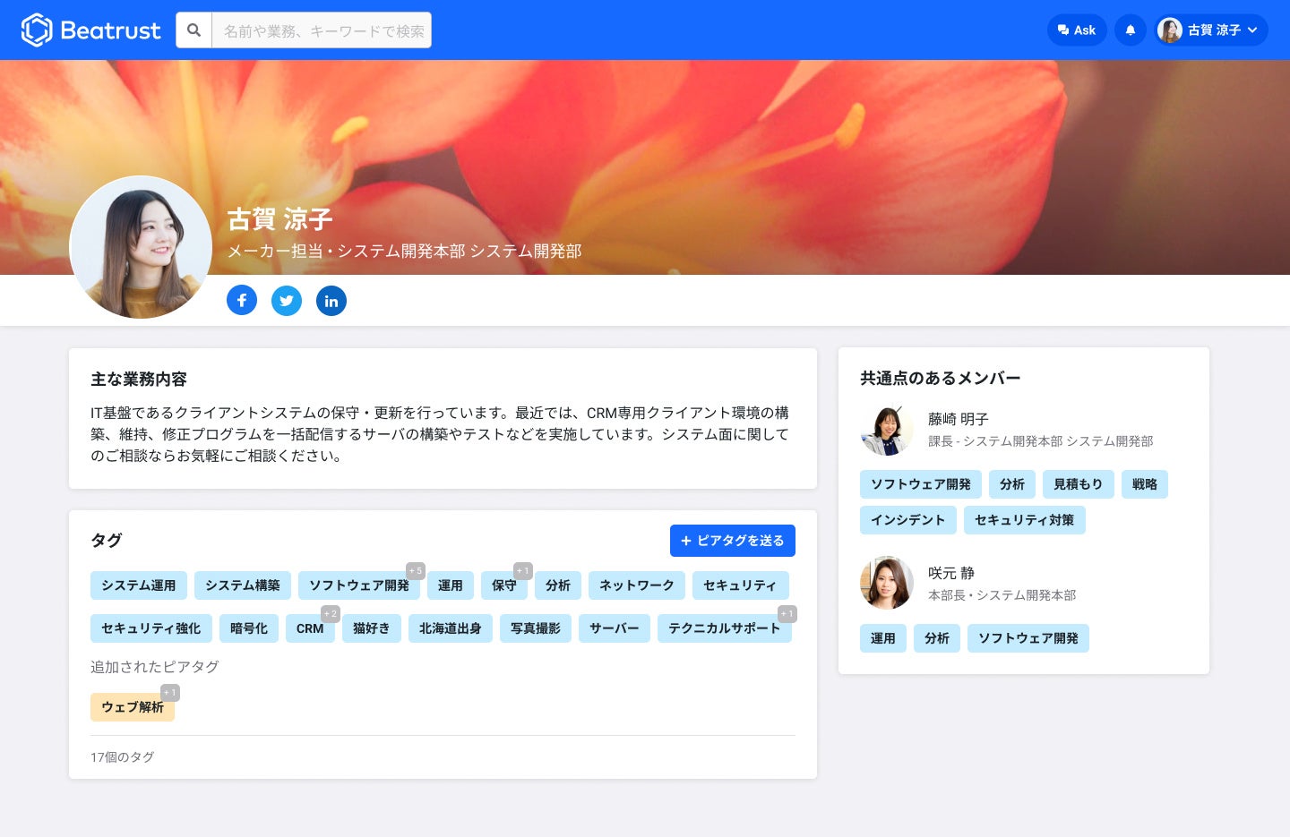 組織内の「コミュニケーション危機」は深刻です。中途採用の増加、働き方改革や価値観の変化、コロナ禍等の中で「目的のある時にだけ話す」状態に陥りがちです。Beatrust のサービスは、役職員間のコミュニケーション/コラボレーションを活性化する機能が作り込まれており、「個」に帰属している知識/経験をスムーズに共有してくれます。Beatrust の成長が、顧客先の組織内で生まれる価値創造を促進してくれるものと期待しています。