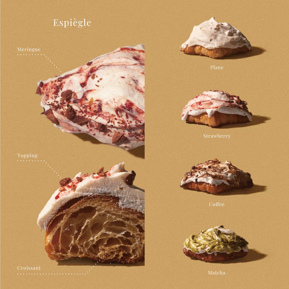 世界一に輝いたクロワッサンにメレンゲをたっぷりのせた「エスピエーグル」、日本では珍しい大きいサイズのカラフルなメレンゲ「ウッフ・デ・ロワ」、メレンゲを薄く広げてナッツやフルーツなどを贅沢にトッピングした「メレンゲフィーヌ」。さらに卵が苦手な方にも楽しんでいただけるヴィーガンメレンゲもご用意いたしました。