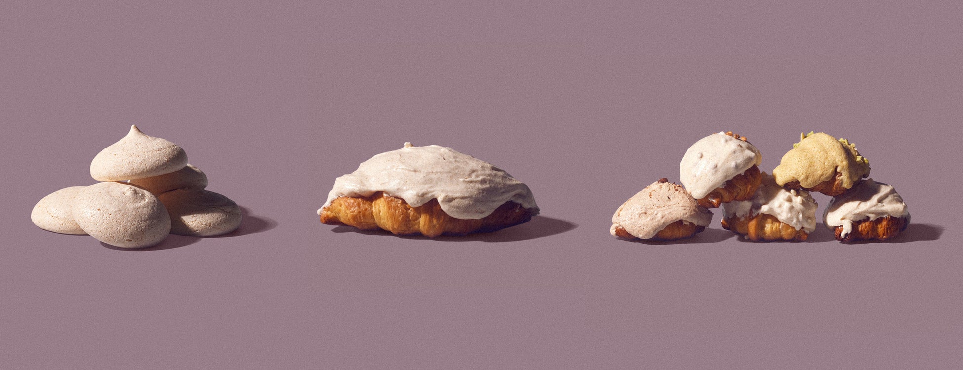 メレンゲと組み合わせたクロワッサンも乳製品を使わず、ヴィーガン仕様に。