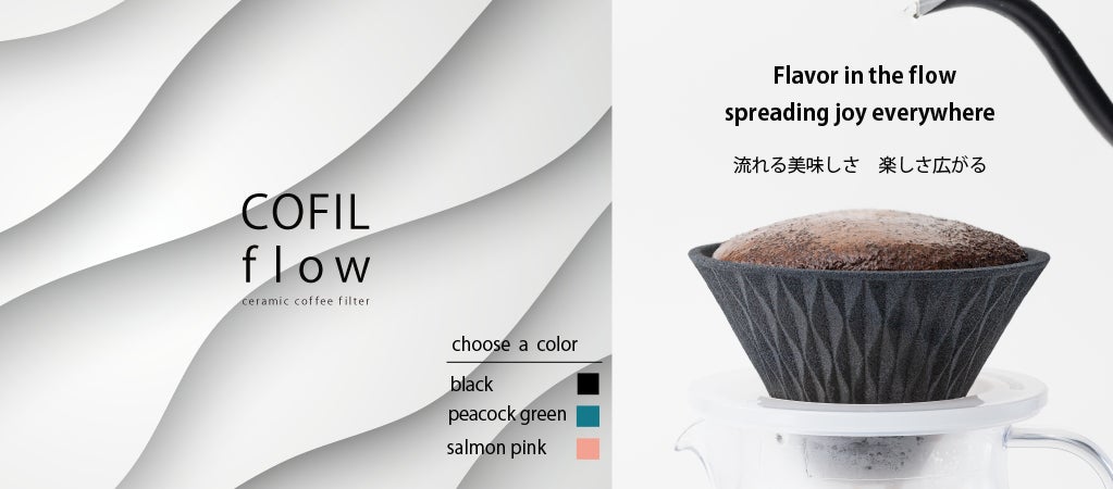 【楽天ランキング125週連続1位獲得】コーヒーフィルターCOFILが業界初のカラーリング多孔質セラミック「flowフロー」波形コーヒードリッパーをリリース!