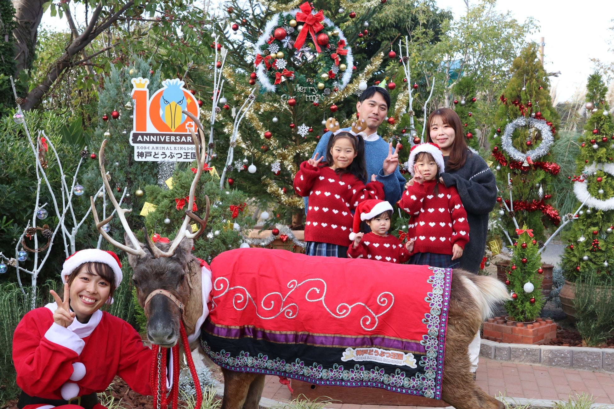 神戸どうぶつ王国(株式会社どうぶつ王国、兵庫県神戸市 園長:日橋一昭)では、2025年12月1日(月)~12月25日(木)の期間、「王国のMERRY CHRISTMAS」を開催しています。毎年恒例の「トナカイとのグリーティング」も12月1日(月)から始まりました。トナカイは北極圏などの寒い地域に生息しているため、神戸のような場所では年中通しての飼育は難しく、本物のトナカイに出会うチャンスはそうありません。この期間、西日本でトナカイに出会えるのは王国だけです!他にも、クリスマス限定のフォトスポットが登場したり、松ぼっくりでトナカイを作る植物ワークショップを開催したりと盛りだくさんなイベント内容になっています。2025年の締めくくりは、ぜひトナカイと共に王国で笑顔溢れる最高のクリスマスを存分にお楽しみください。