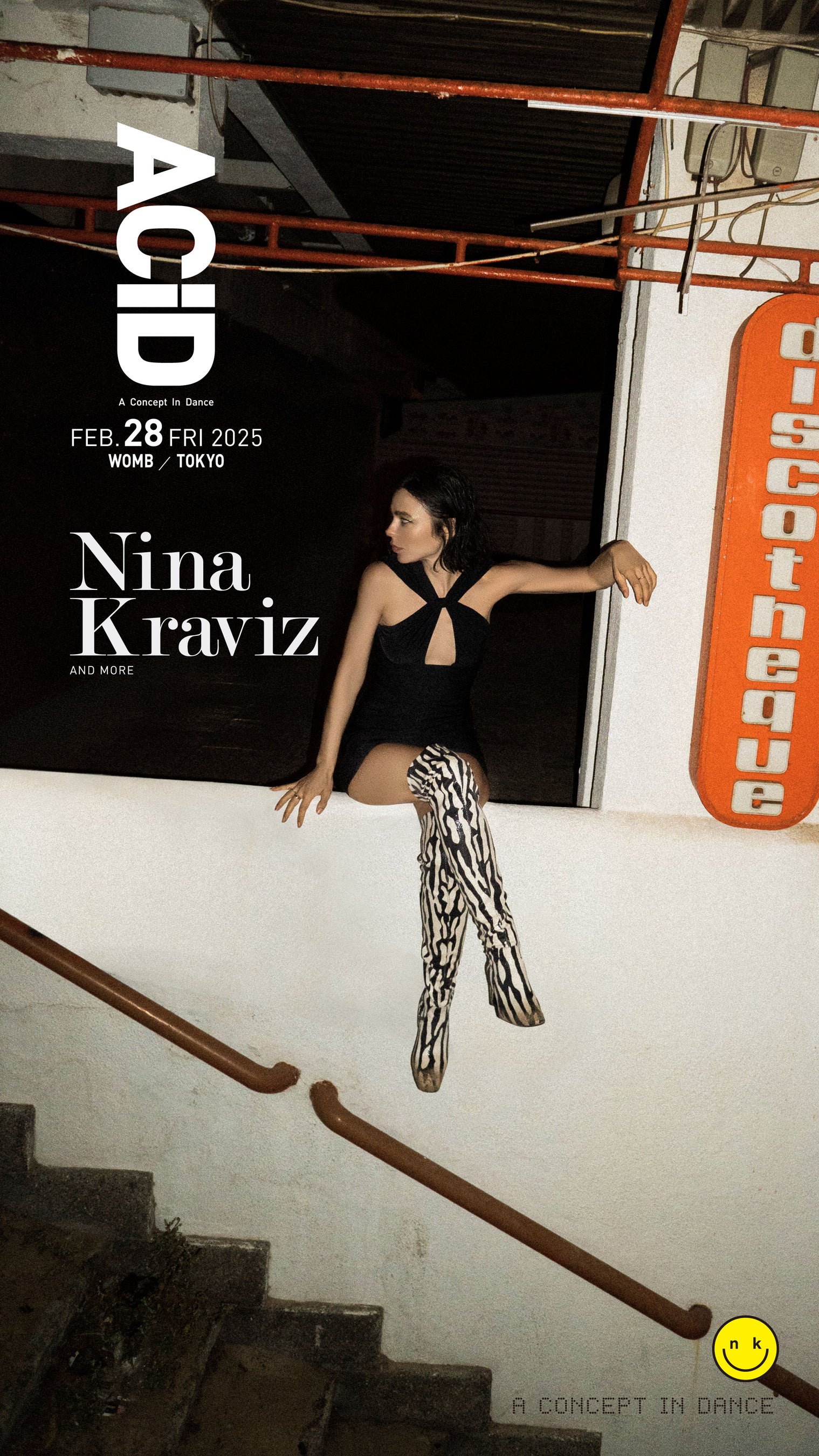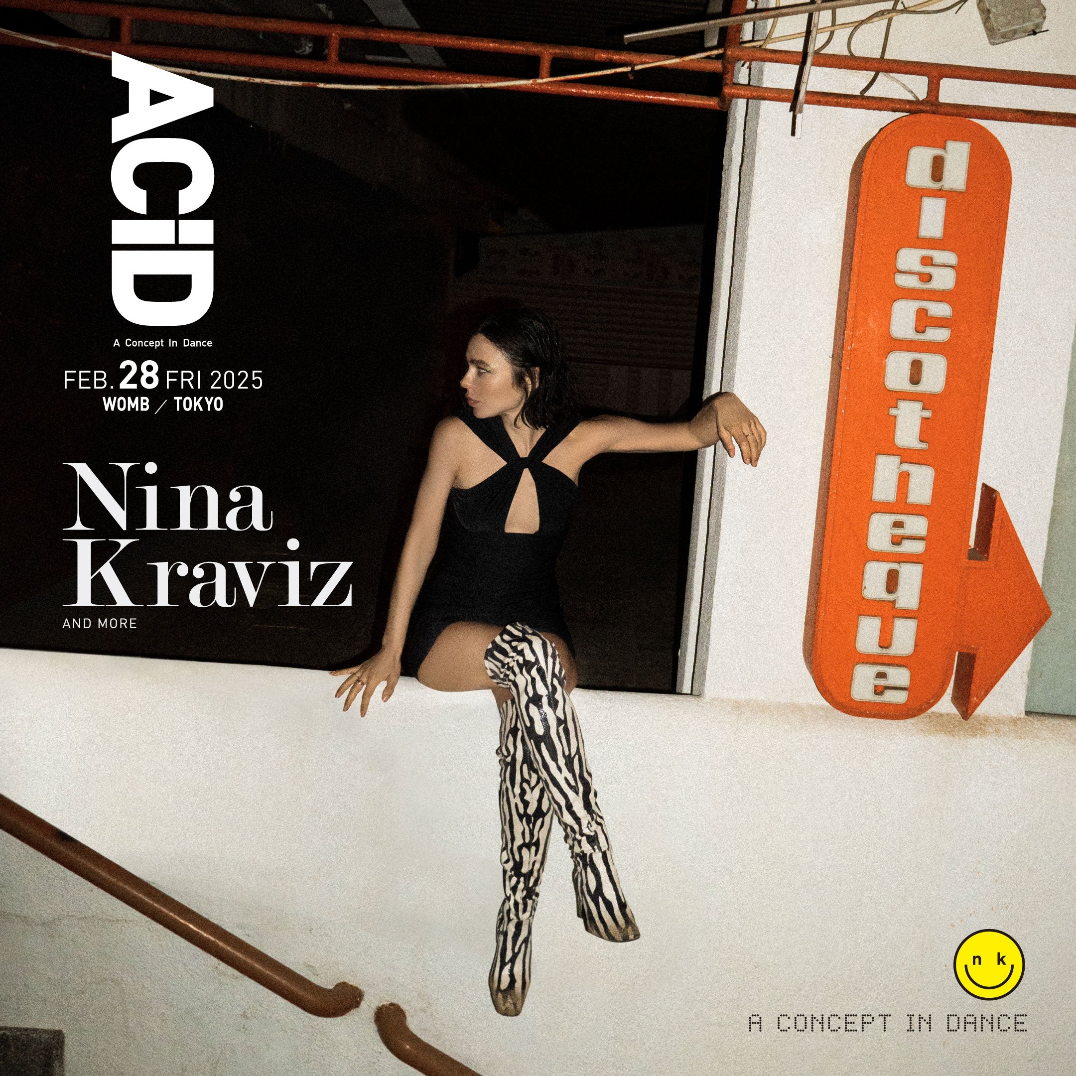 Fatboy Slim(ファットボーイ・スリム)、 DJ HARVEY(DJ ハーヴィー)、Peggy Gou(ペギー・グー)等、世界の大御所アーティストたちを次々に招聘し、音楽ファンの記憶に深く刻まれるようなクラブイベントやフェスティバルを主催してきたパーティー「ACiD: A Concept in Dance」が、2025年2月28日(金)、渋谷の名門ベニュー WOMB(東京都渋谷区円山町2−16)にて、テクノシーンのトップ DJ、Nina Kraviz(ニーナ・クラヴィッツ)が出演するイベント「ACiD: A Concept in Dance - Nina Kraviz」を開催することを発表いたします。