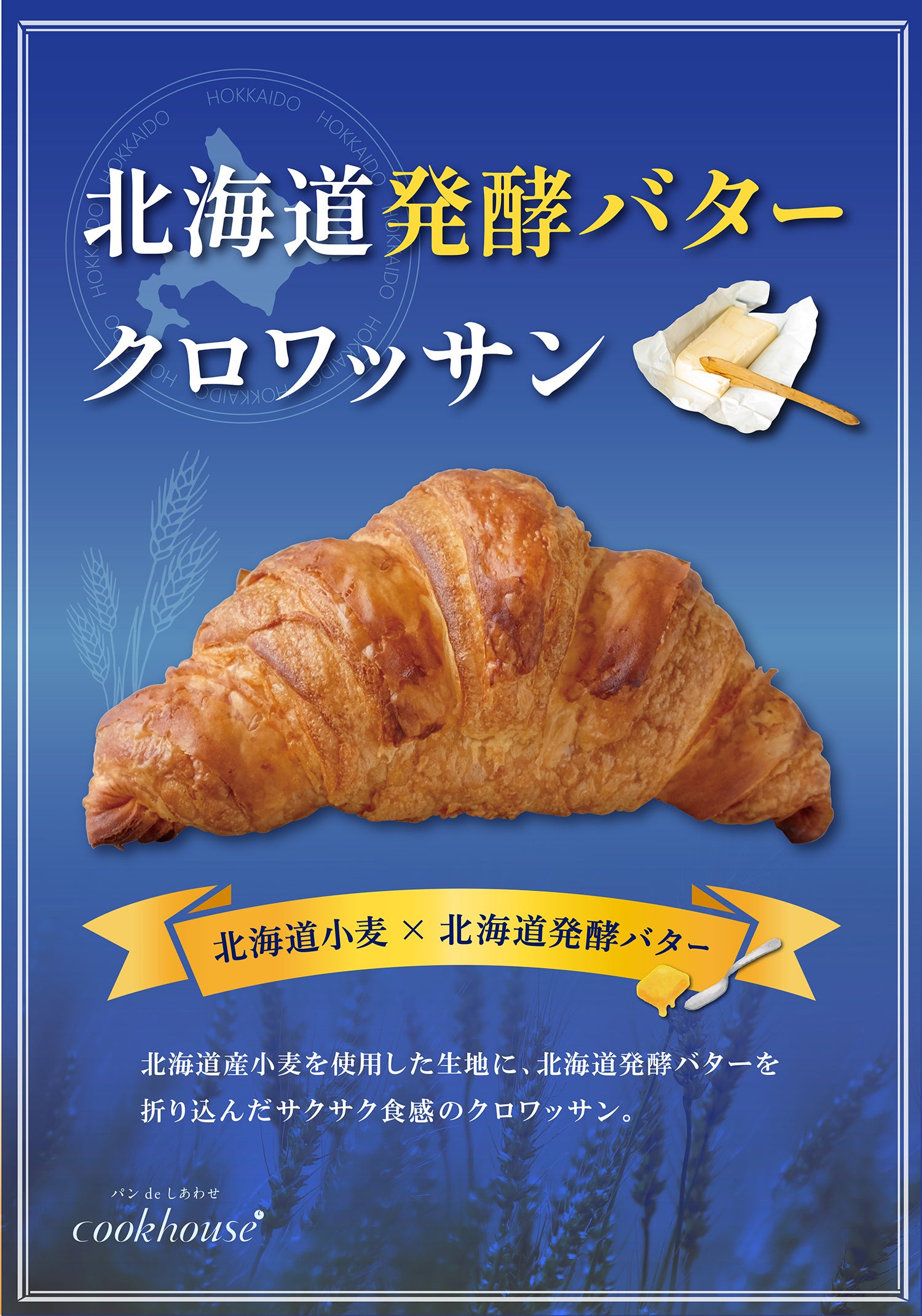 北海道産小麦を使用した生地に、北海道発酵バターを折り込んだサクサク食感のクロワッサンで朝食にもぴったりです。
