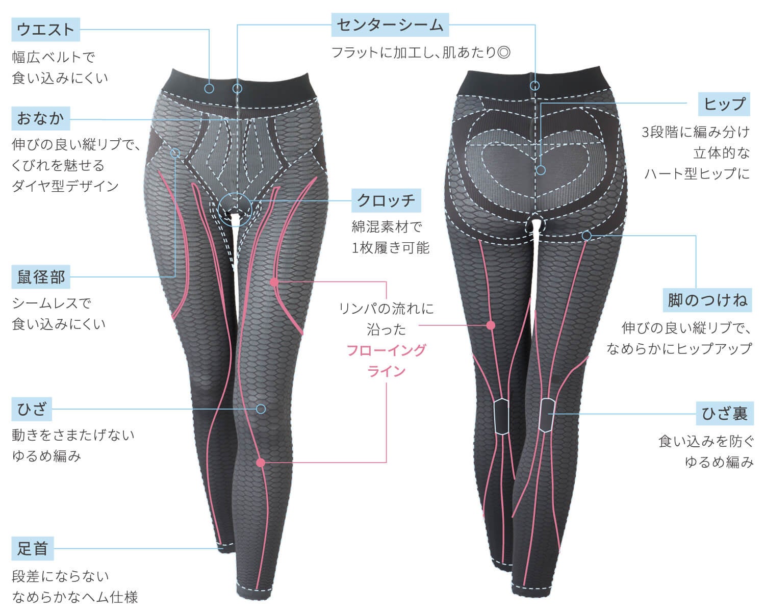 女性のからだを知り尽くしたランジェリーメーカーと共同開発し、緻密にパターンを設計。姿勢やボディラインをサポートし、美しく魅せます。