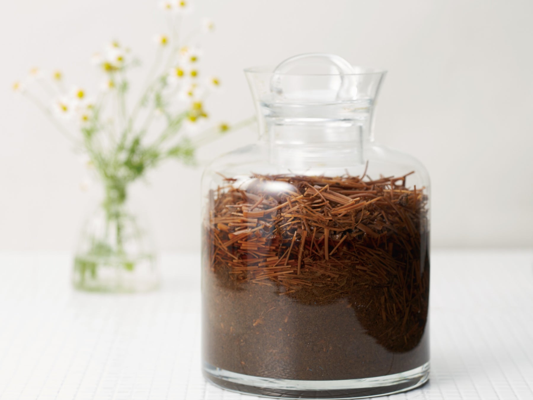 40年にわたり愛され続けるロングセラーアイテム「華密恋薬用入浴剤」は、有機JAS認定を取得している自社農園(長野県北安曇郡池田町)や国内の契約農家の方々が、土作りにこだわり、農薬を使用せず、一株一株に愛情を注いで栽培したジャーマンカモミールを原料につくられています。そのカモミールの全草(花・葉・茎)から、独自の非加熱製法でカモミールの香りと有効成分を最大限に引き出し、約30日かけてじっくりとエキスを抽出。そのエキスをそのままボトリングしたカミツレエキス100%の入浴剤です。