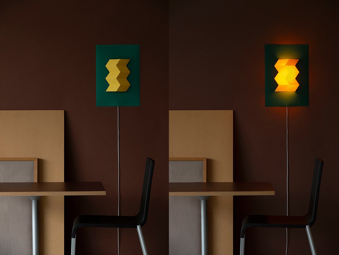 蛇腹の陰影が壁面に繊細な表情をつくり出し、空間に静かなアクセントを添えるライト。