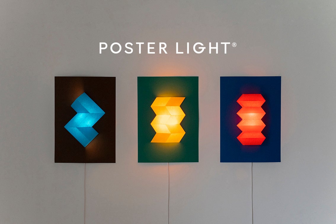 紙から生まれたポスター型照明【POSTER LIGHT®】に幾何学立体が美しい新商品3種が登場