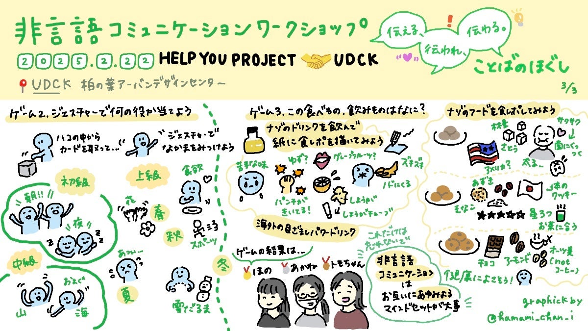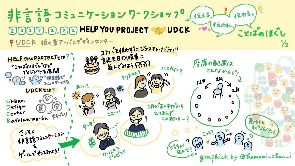 ヘルプユープロジェクト(代表:古山正裕)は“言語の壁を非言語で越える”ことをミッションに活動するプロジェクト集団です。医療の指さし会話帳『HELP YOU』や外国人にもやさしい医療機関検索アプリ『みっけ』、非言語コミュニケーションワークショップ『ことばのほぐし』など共創プロジェクトを進めています。代表含め構成員は会社員やフリーランスで働きながら活動に参画しています。新潟で生まれたプロジェクトが、現在は千葉県柏市に拠点を構えて活動しています。
