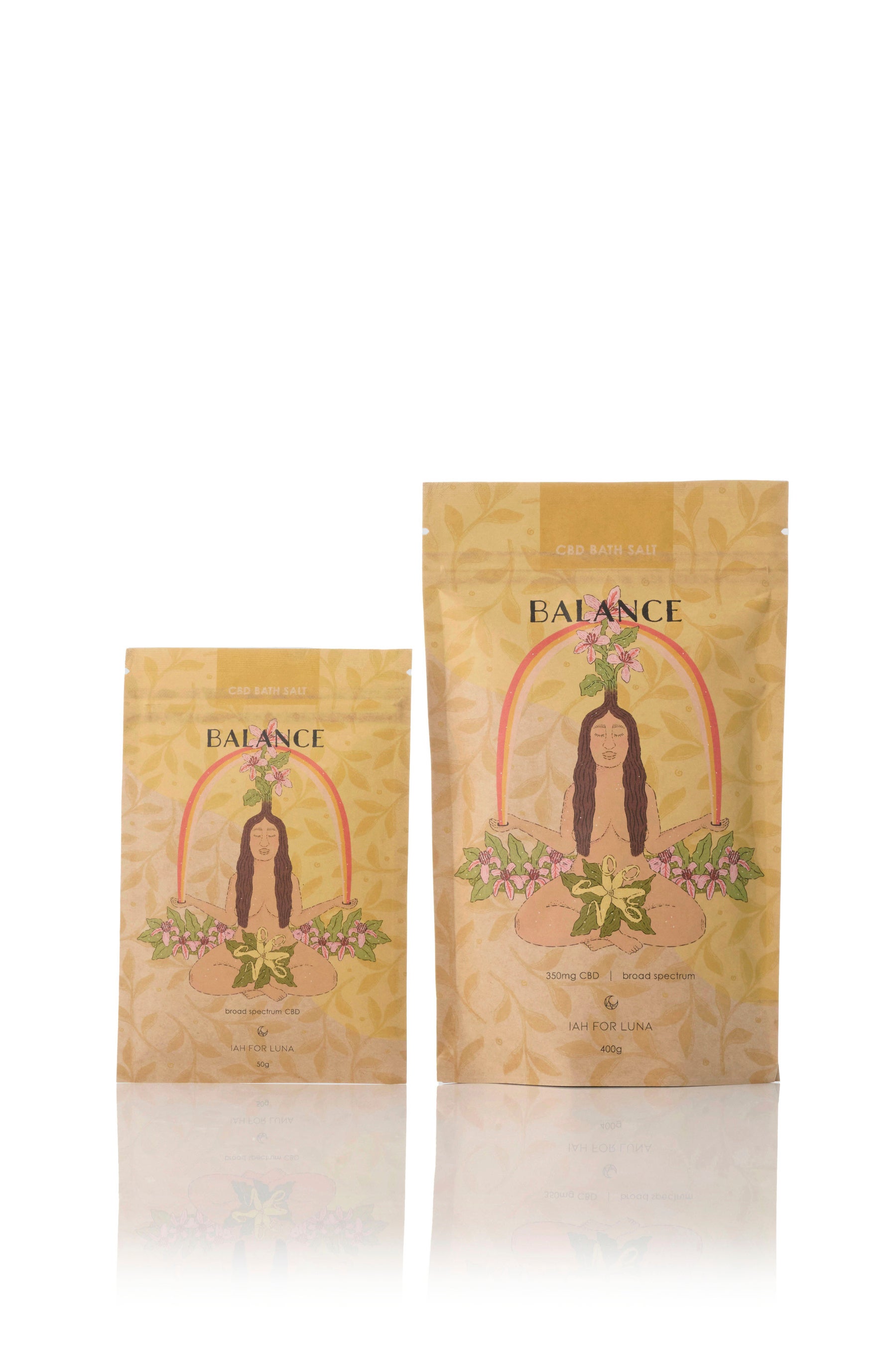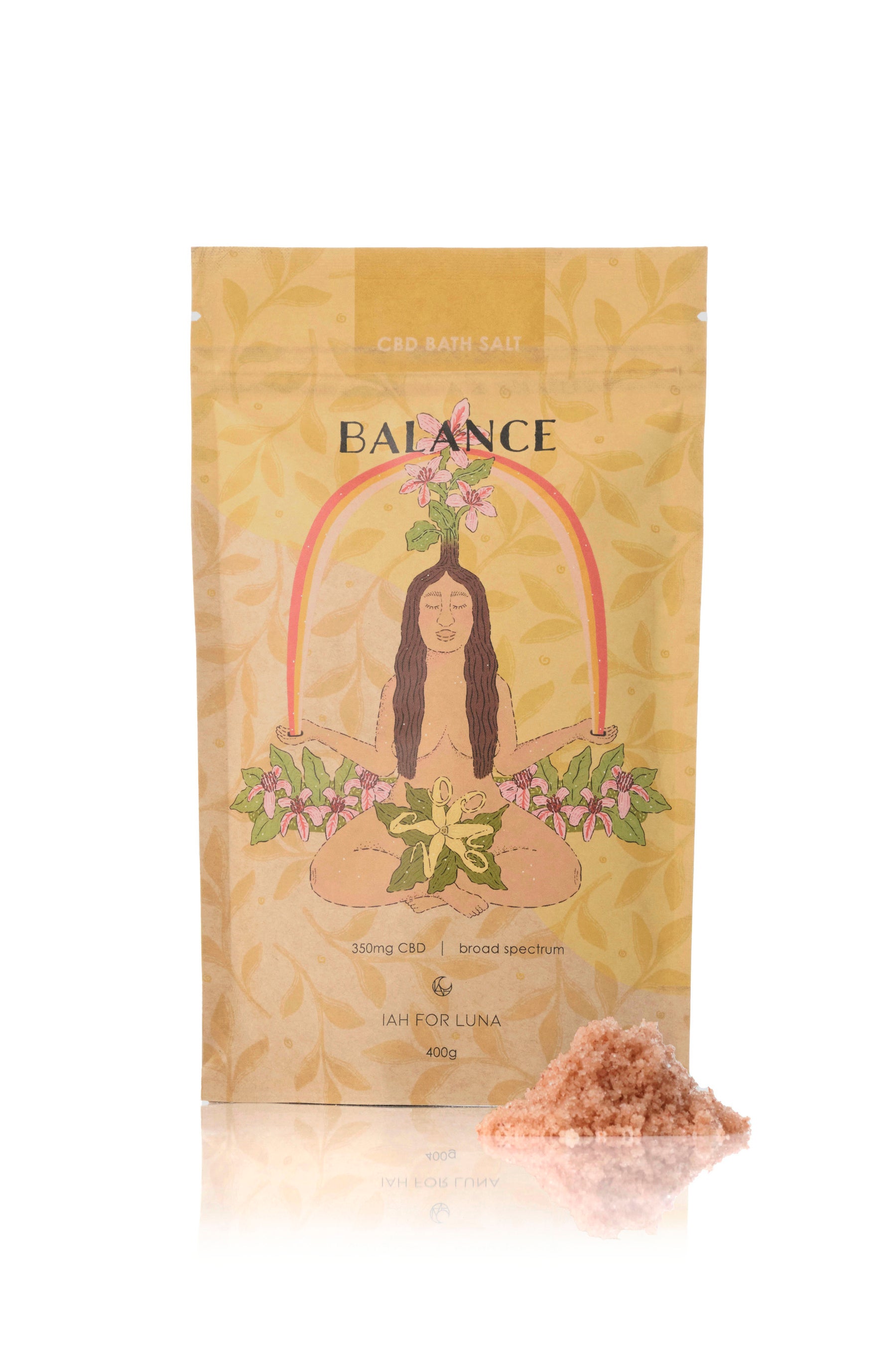 ヒマラヤ岩塩にブロードスペクトラムのCBDを350mg配合したバスソルト。カモマイルローマン、パチョリ、ラベンダー、ベチパーの青々とした爽やかな香りが心身を優しく整えてくれます。