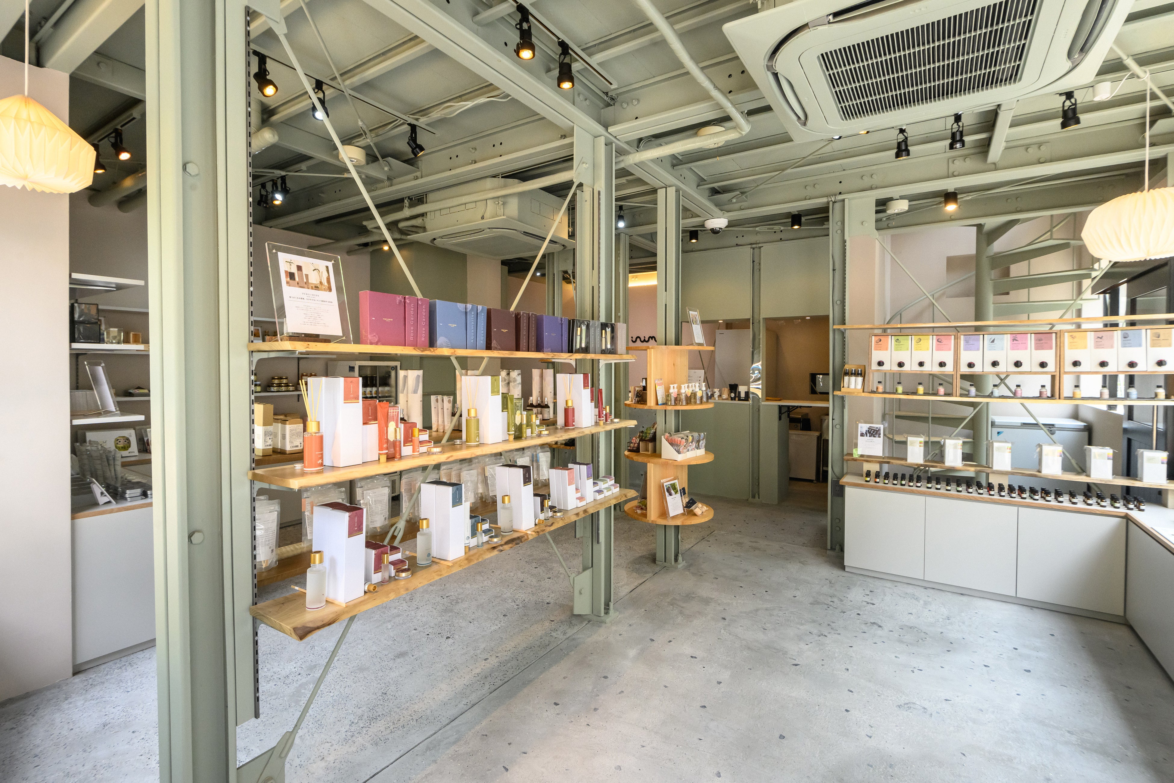 ・フロア:【1F】香り商品、雑貨、食品、飲食/【2F】ワークショップスペース、蒸留器