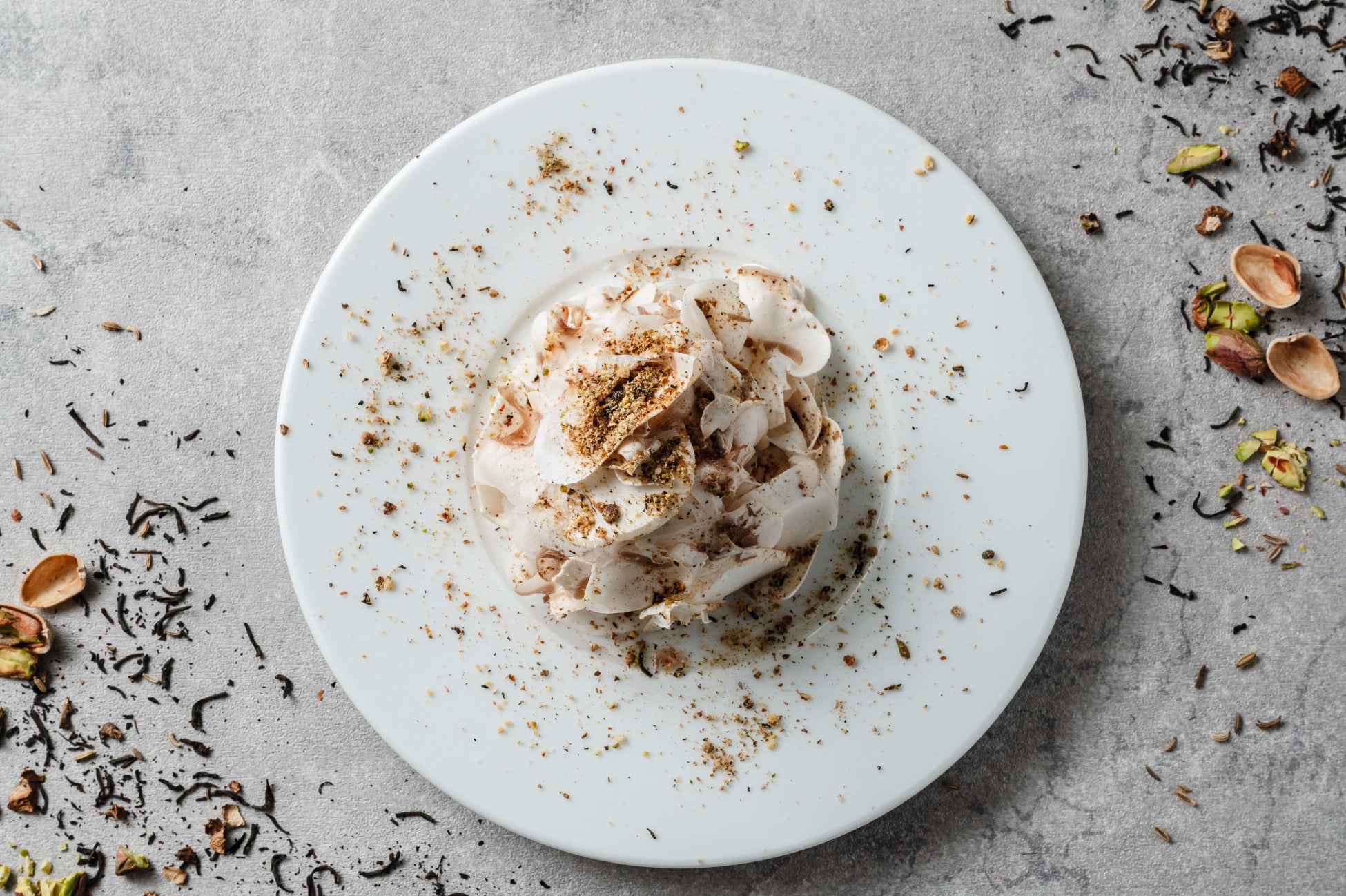 今回のコースのデュカは、オーガニックのアールグレイの茶葉にピスタチオ、カルダモンなどの数種のスパイスを組み合わせました。
