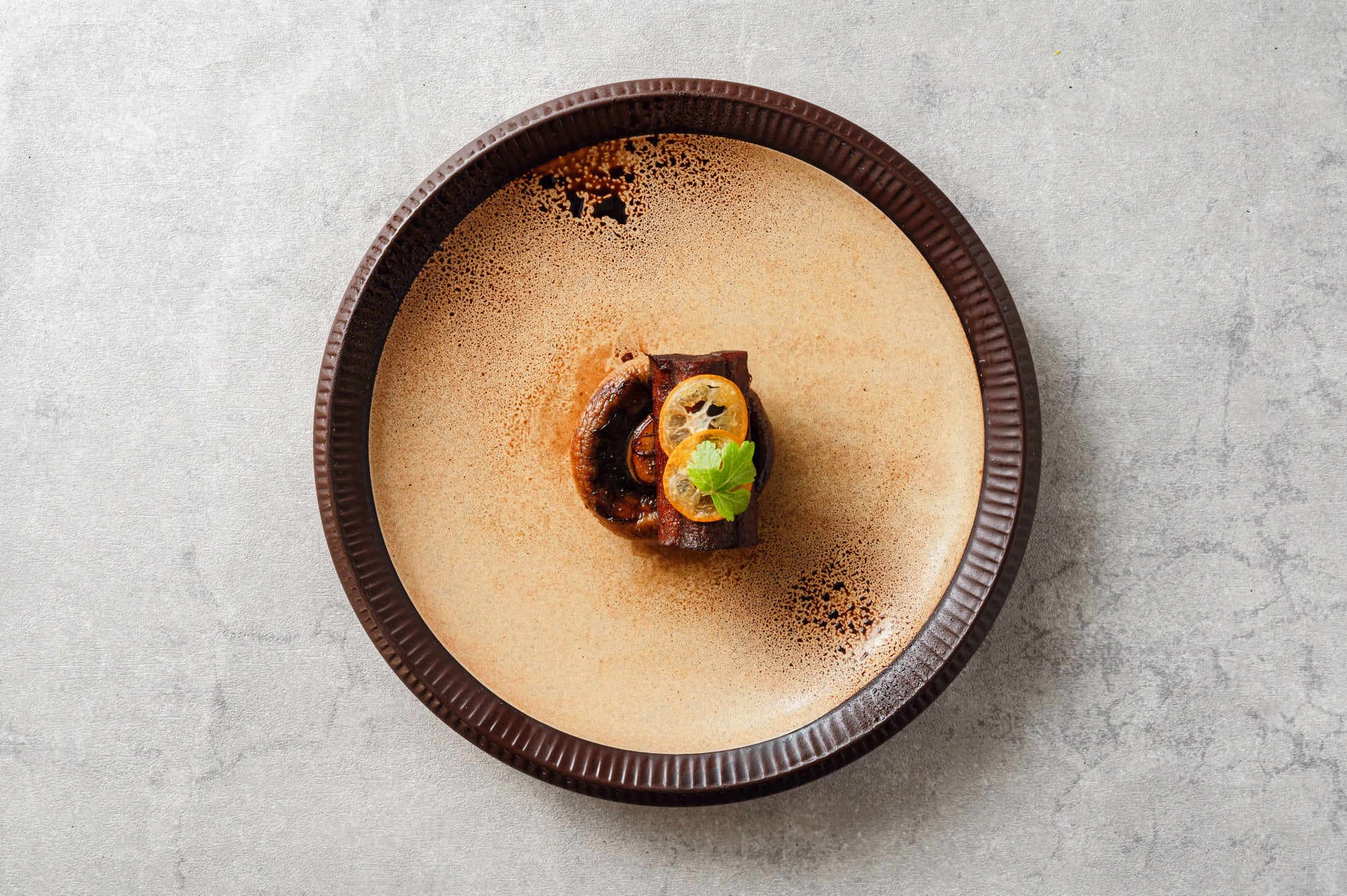 ヒレの部位を使用し、瑞々しさを内面に保ちながら表面を香ばしく焼き上げ、噛むと濃厚なうま味エキスが口内に溢れます。