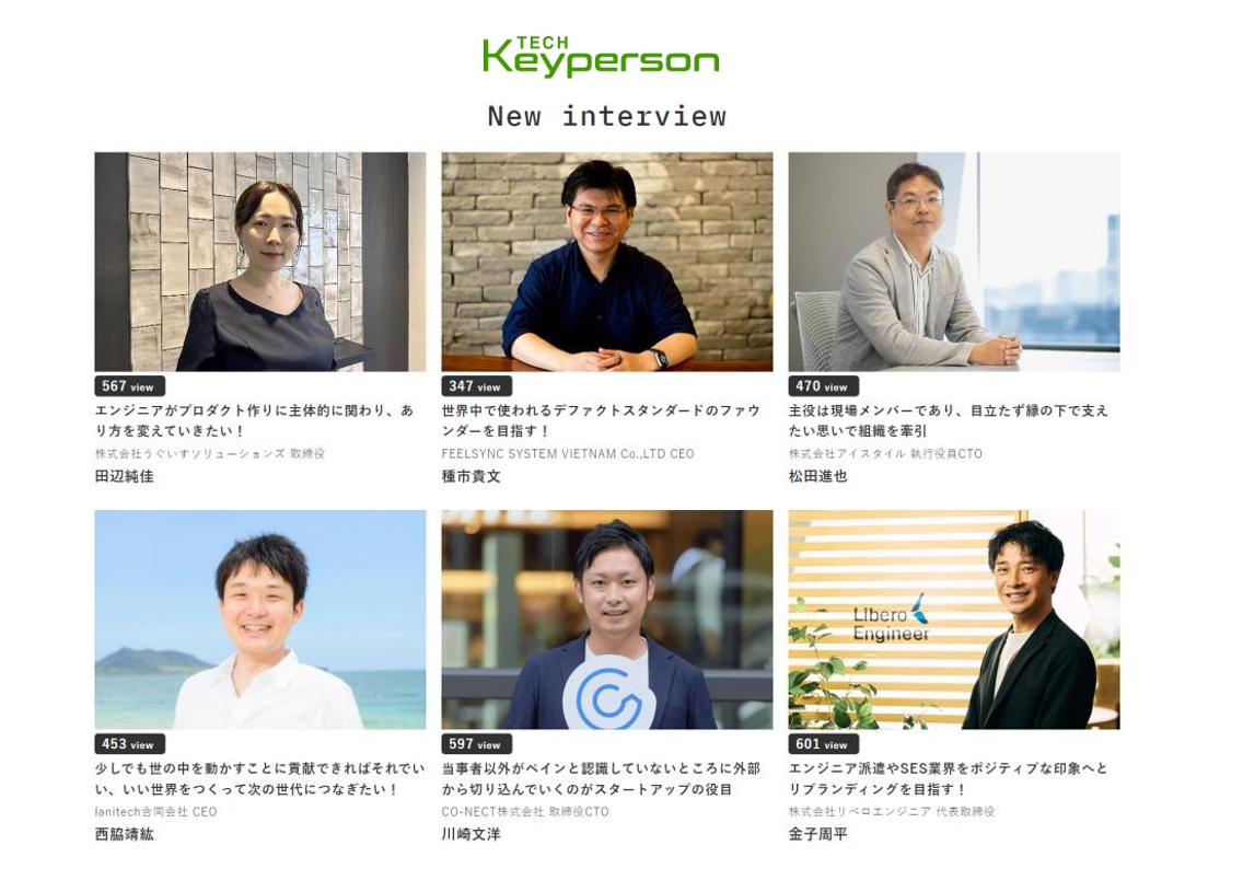 私たちはCTO/VPoEなどエンジニア人材が輝ける世界の創造を支援しています。CTOは最高技術責任者と訳されますがその定義は実は曖昧です。どういった仕事をすることが自社の望むCTOなのかを理解してない、定義づけできていない経営者も実際のところかなり多いのです。これは求職者側にも言えることで、自分自身がどんな業務をしたいか、どんなキャリアを積みたいかなどキャリアビジョンが曖昧です。両者の曖昧さが採用ミスマッチに陥ってしまう最大の原因だと考えています。これを少しでも解決したいと考え、私たちは エンジニアでハイキャリア形成した方専門のインタビューメディア『TECK KEYPERSON(テック・キーパーソン)』を立ち上げました。