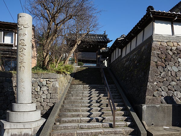 石川県金沢市東山にある安産・子宝祈願で有名な鬼子母神を祭る真成寺(しんじょうじ)。水子供養、人形供養でも有名で、国の重要伝統的建造物群保存地区の卯辰山(うたつやま)山麓寺院群にあり、ひがし茶屋街からも近接した日蓮宗のお寺です。
