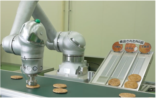 安川グループの技術を集結し、AI×ロボットの連携によって検査工程自動化を実現すると同時に、検査結果データから不良傾向分析を行うことで、歩留まりの改善、人手不足の解消や食品ロス削減に貢献が期待できます。形状や合格品の判定基準が画一ではなく、製品検査を人手に頼らざるを得なかった食品製造業で注目されるソリューションです。