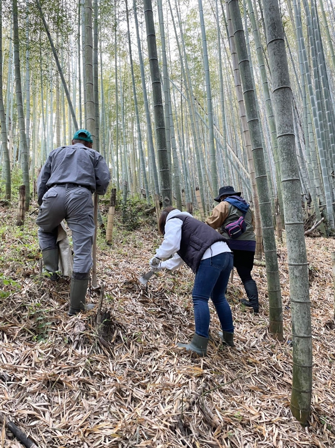 【写真上】たけのこ収穫ふるさとワーケーションの様子