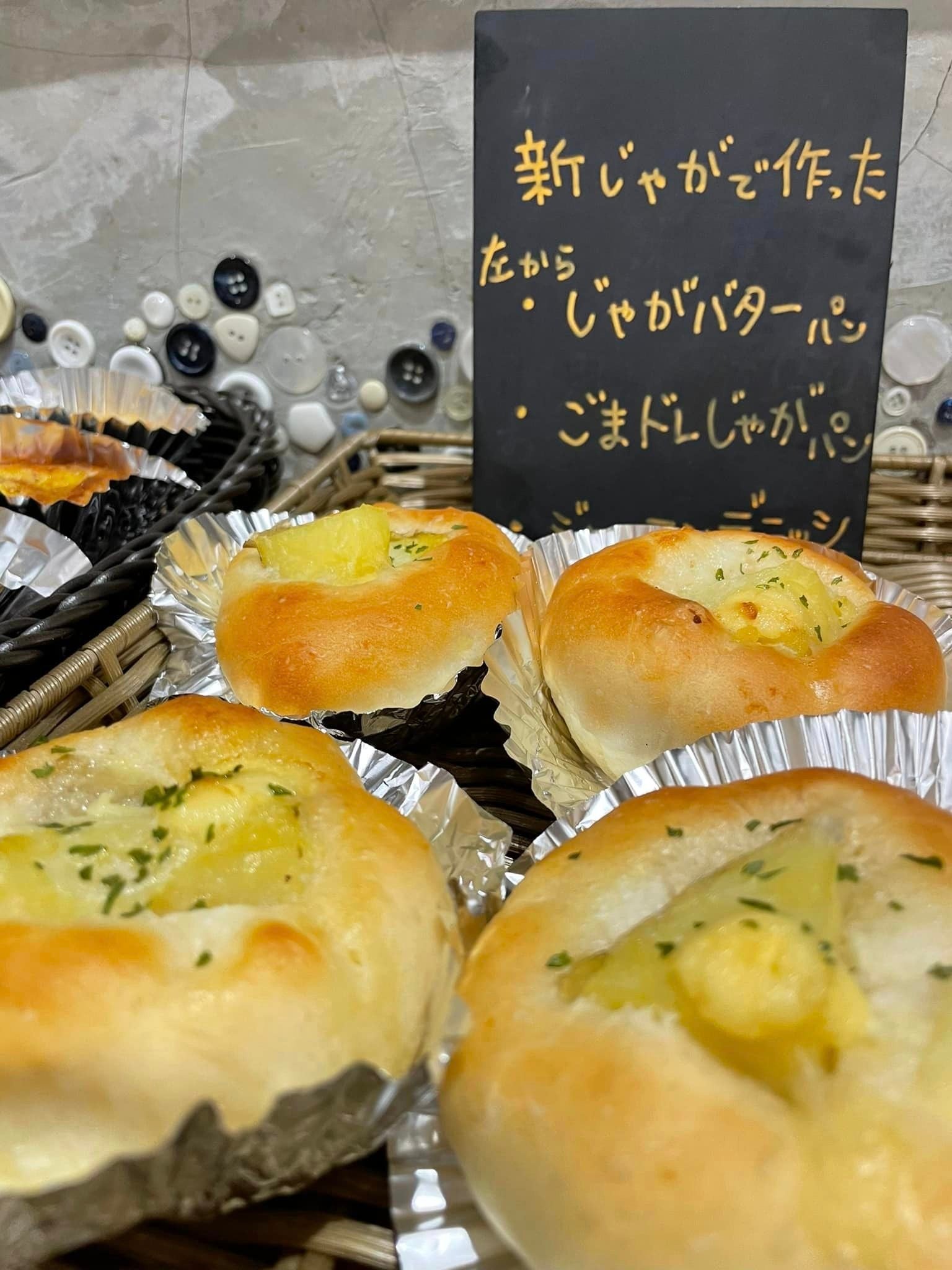 【写真下】収穫した規格外ジャガイモを商店街で販売し、そのジャガイモを使ったパンも販売