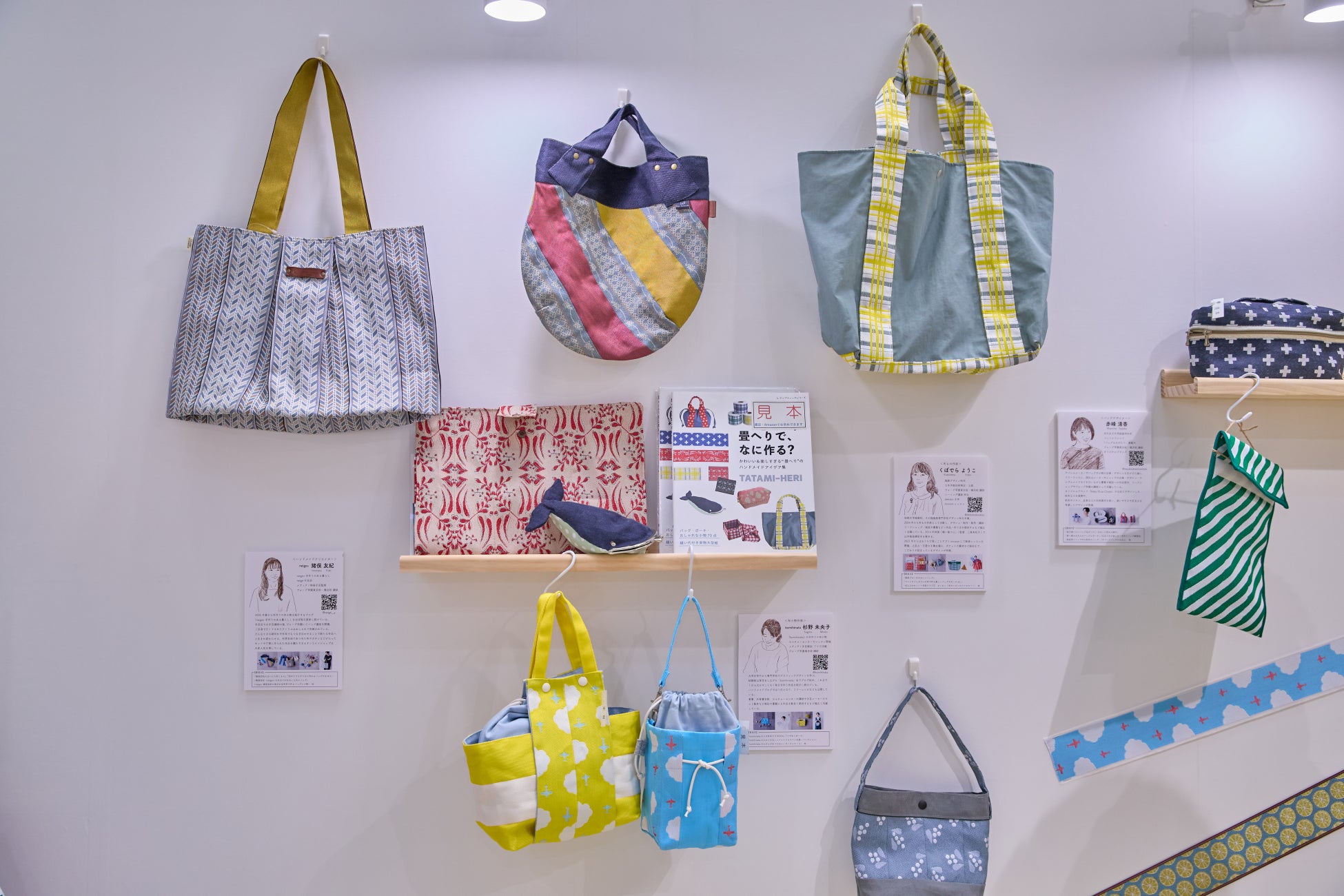 畳縁を使った和とモダンが融合したバッグ・ポーチ・アクセサリーなどを展示。