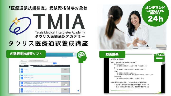 AIによる通訳実技練習ができる!医療通訳士検定試験受験資格取得サービスTMIA(タウリス医療通訳アカデミー)を開講