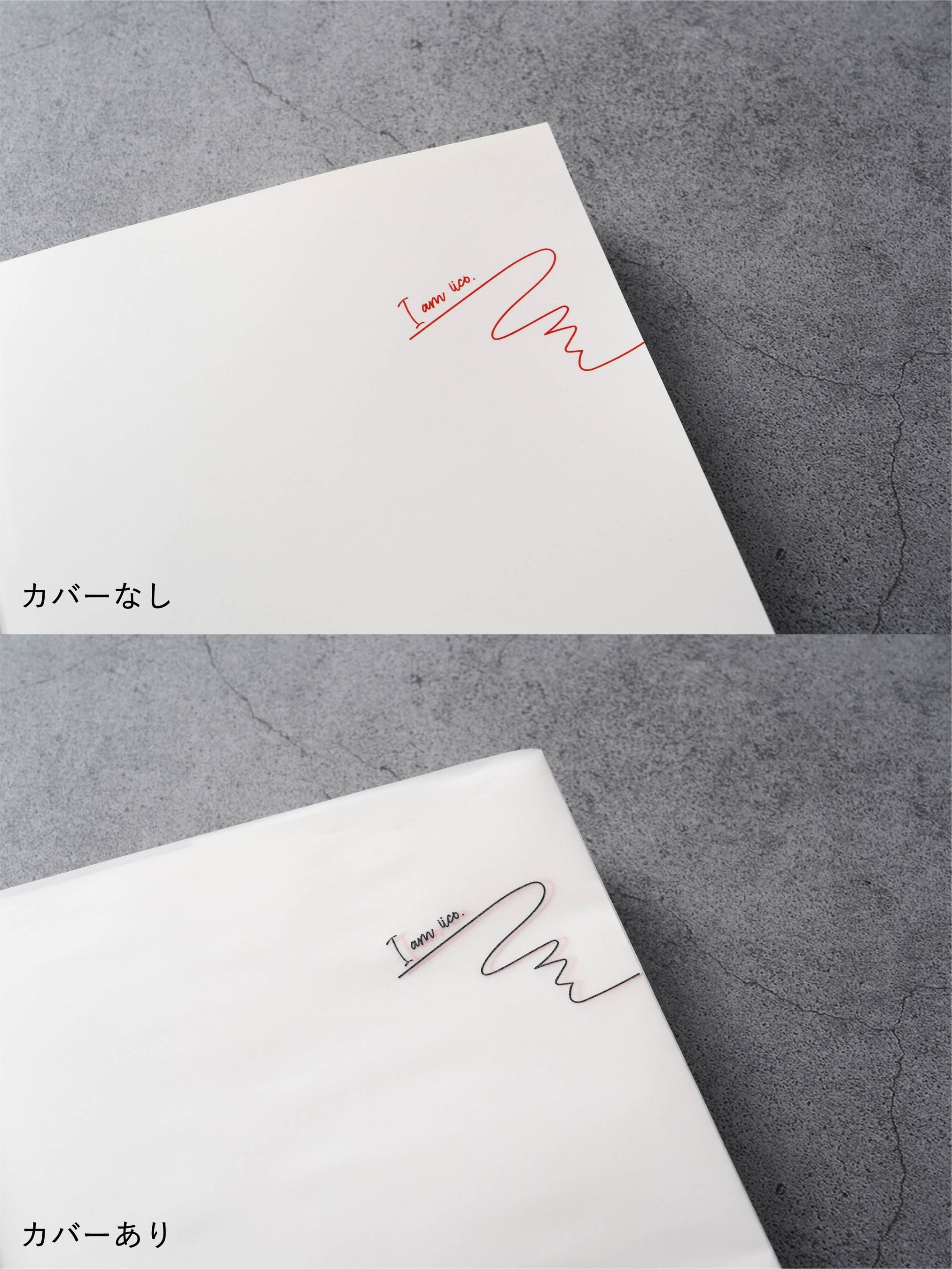 カバーはトレーシングペーパーを採用。マットな質感とモノトーンがグッと落ち着いた雰囲気を演出します。