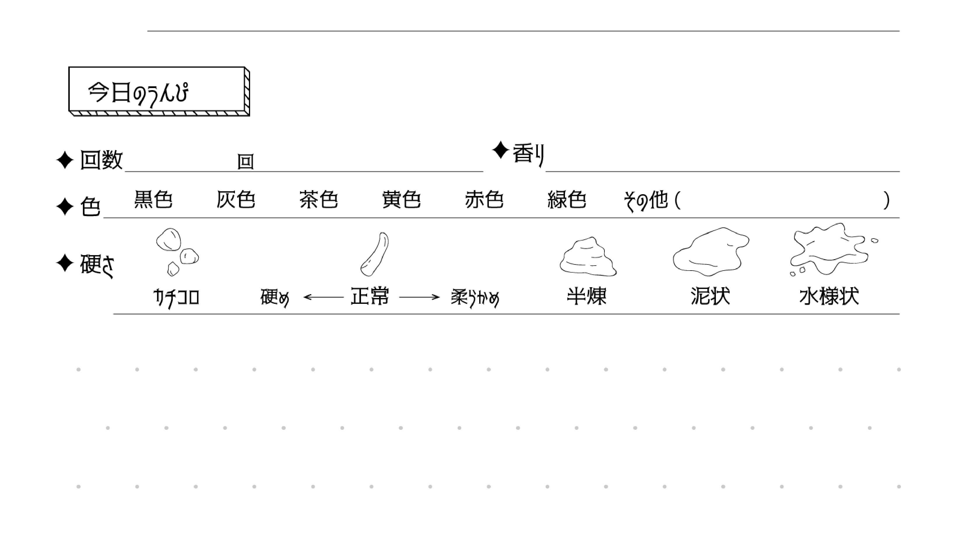 それぞれの項目のイラストを1日1回選択するだけだから不要な時間を使わずにサッと書きとめ、振り返りも一目で完結できる。思わず愛着を持ってしまうクスッと笑えるイラストも楽しく続けられるポイント。