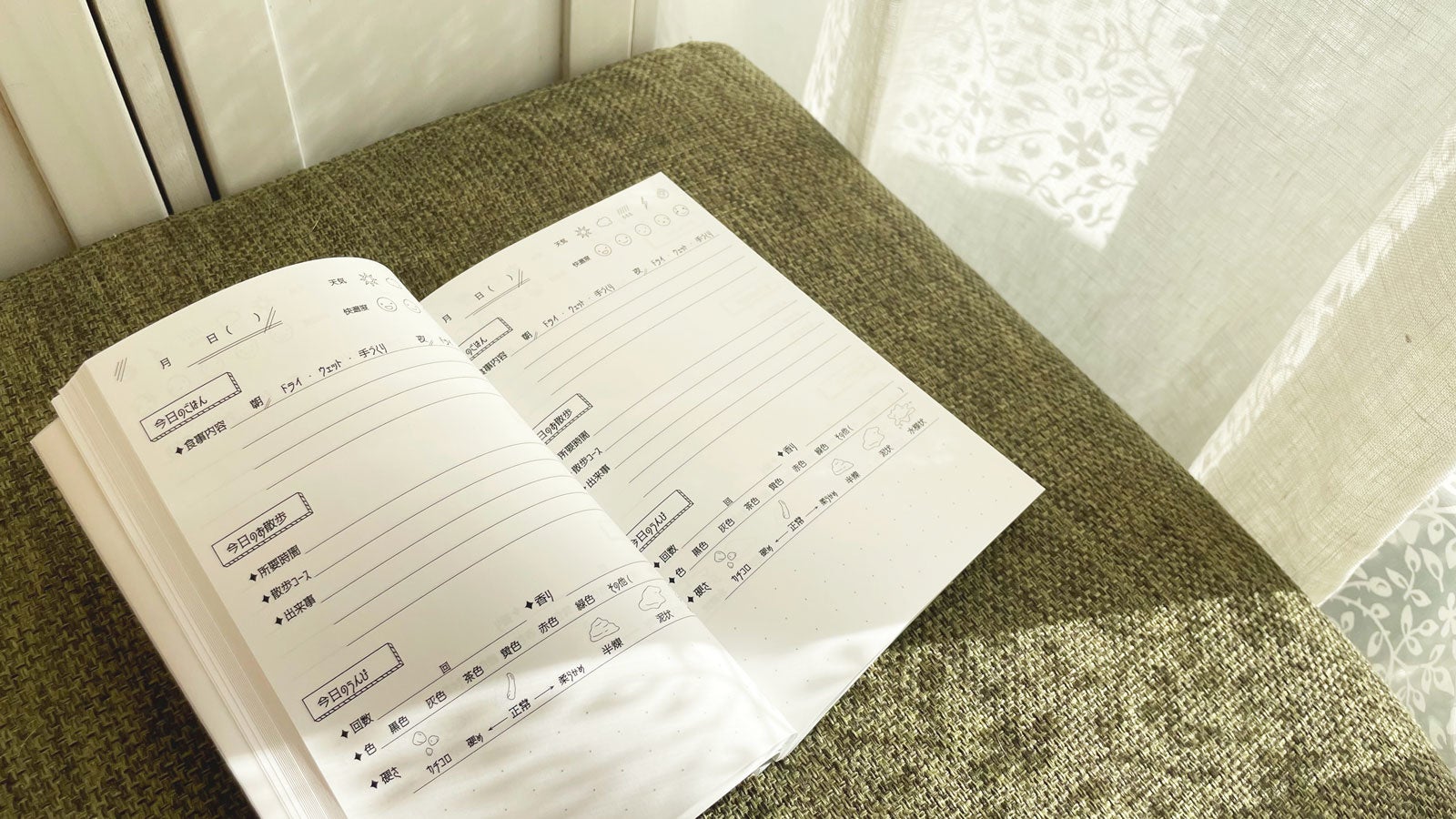 うちの子手帳”イイコの記し”は1日5分もかからずに、その日の出来事や愛犬の健康状態を記録できるオールインワン手帳。