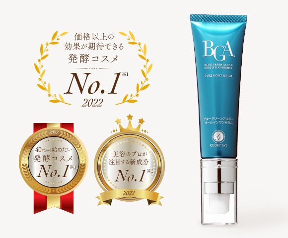 また、日本マーケティングリサーチ機構が、2022年3~5月に発酵コスメについてインターネット調査を実施した結果、「BGAスキンケア」が『価格以上の効果が期待できる発酵コスメNo.1』『40代から始めたい 発酵コスメ No.1』『美容のプロが注目する新成分 No.1』も獲得している期待のコスメシリーズです。