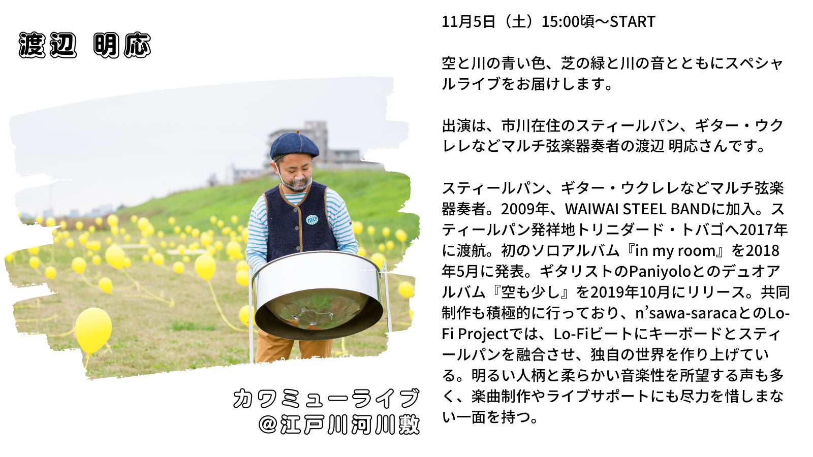 2020年11月には新型コロナウイルス感染症拡大の影響を受けて、江戸川河川敷の会場だけではなく、YouTubeによるライブ動画配信や市川うららFMによるラジオ放送などオンラインツールを活用したり、市川市内外の約70店舗をサテライト会場とするなど、時代に合わせて試行錯誤しながらの開催にもチャレンジしました。