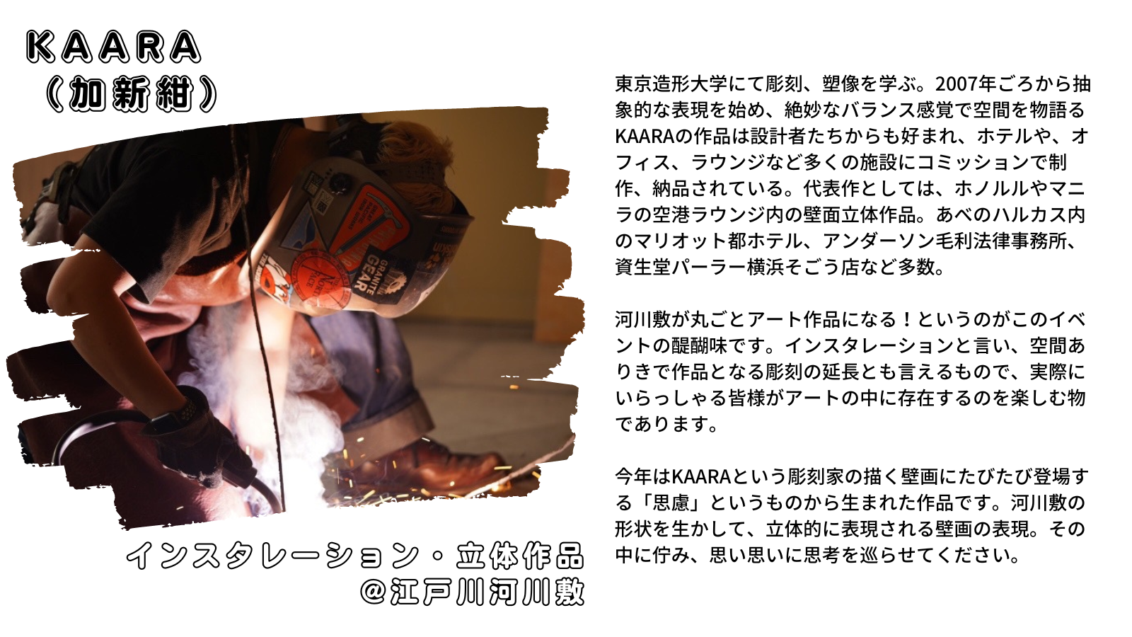 河川敷にて作品を体感する時間をしかと心に残すものになる、そんなイベントでありたいと思います。