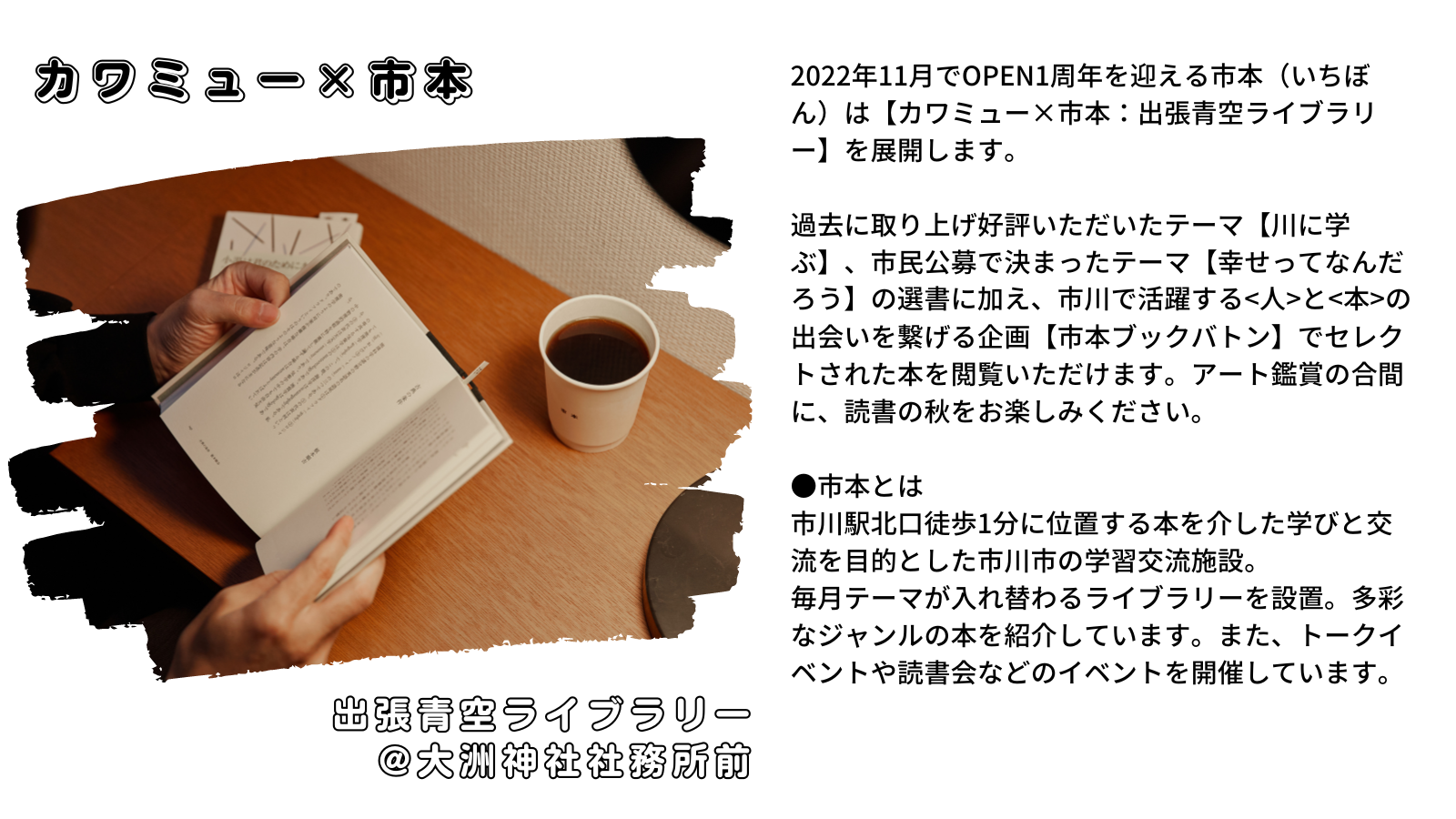 場所:市川駅南口図書館えきなんギャラリー(千葉県市川市市川南1丁目10-1・I-linkタウンいちかわザ・タワーズ・ウエスト3階)