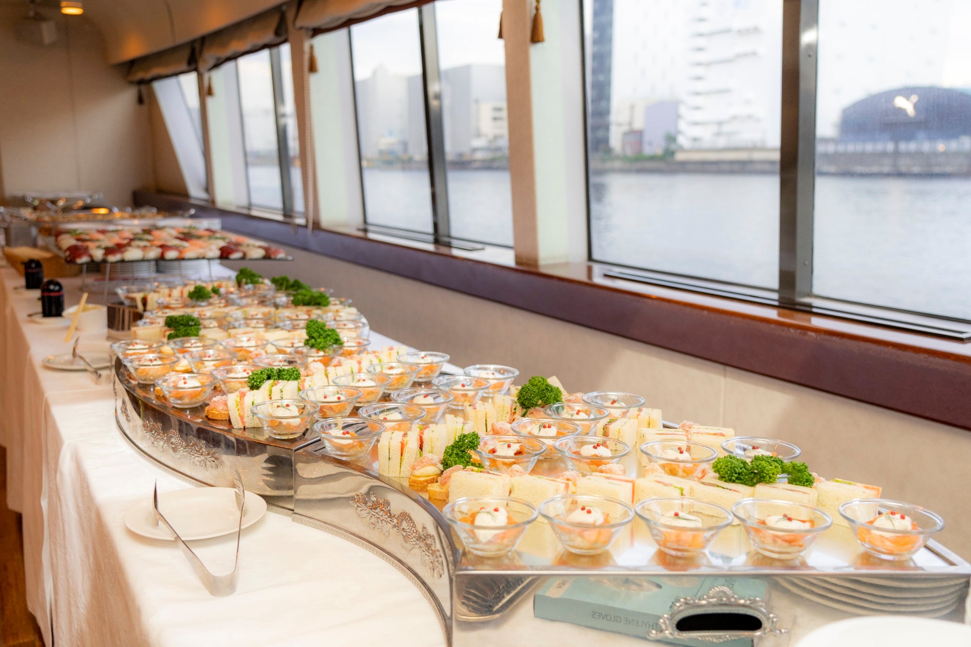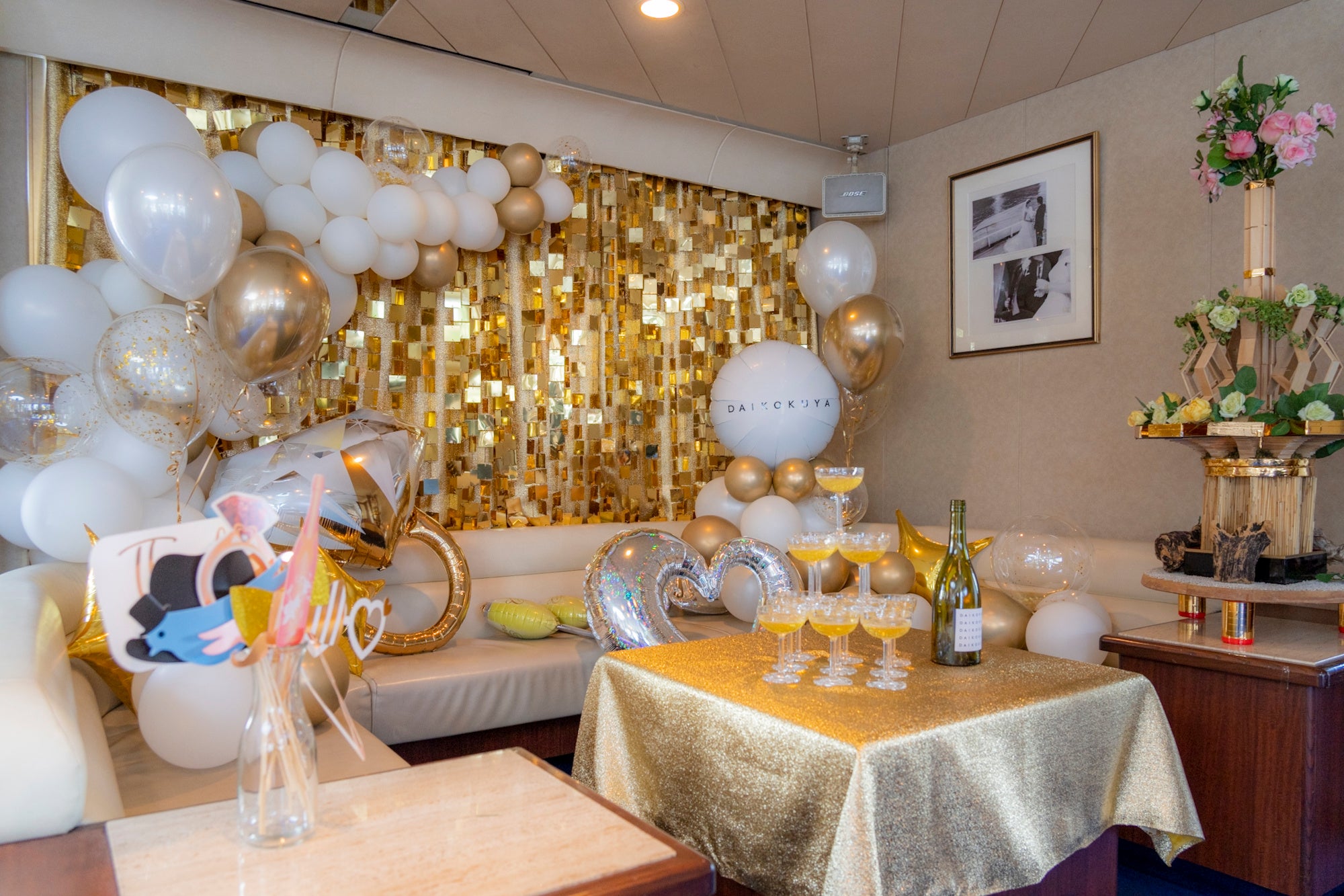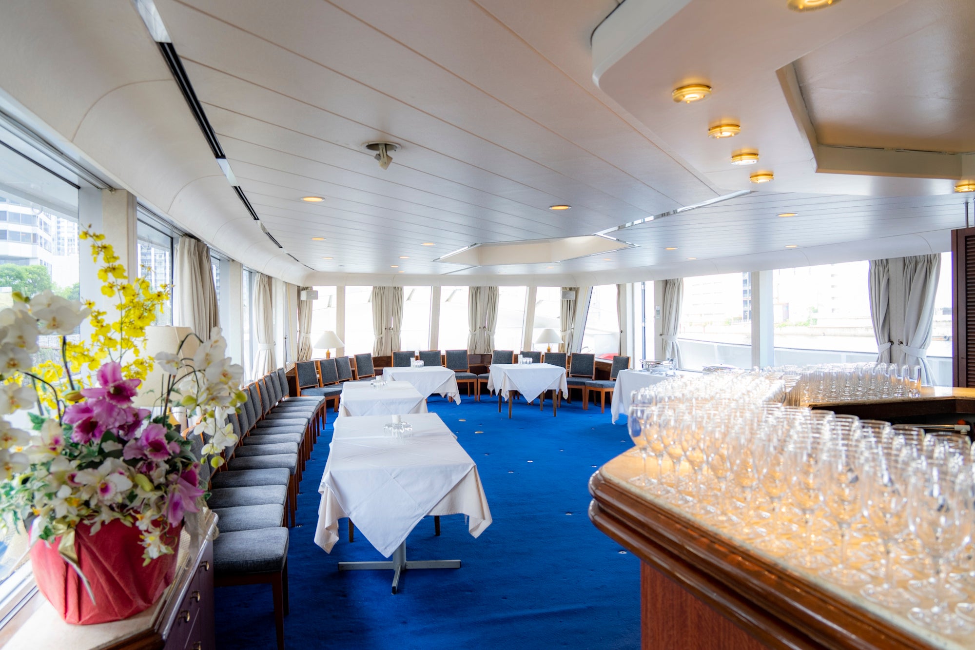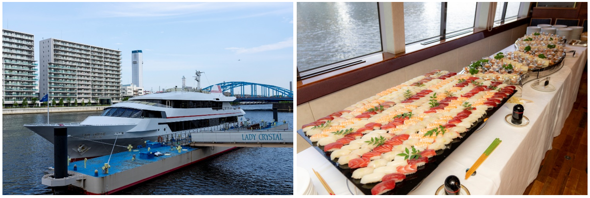 会場となる「ザ・クルーズクラブ東京」は、東京湾を周遊する「クルーズシップ レディクリスタル号」と陸上のクラブハウスを併せ持つ、天王洲アイルのフレンチレストランです。この度、大黒屋史上初の船上での採用イベントが実現。華やかな環境を活かした、様々な企画を行いました。