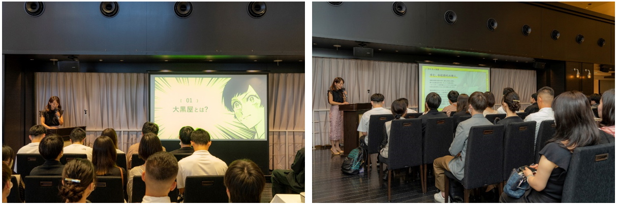 求める人物像、給与・福利厚生、選考フローについてもお話しし、「当社は世界NO.1を本気で目指しています。その実現のためには、これからの時代をつくる皆さんの若い力が必要です。そして、大切なのは『やる気』です。失敗を恐れることなく、積極果敢にチャレンジし、自らのアイデアを形にしていく姿勢があれば、大黒屋には活躍できる土壌があります。知識やスキルを柔軟かつ貪欲に吸収して、新しい価値をともに生み出していきましょう」と締めくくりました。