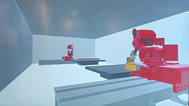 ロボット型レーザー溶接機の動きをVRで再現したもの。通常の機械は安全上近づくことができないが、VRでは近距離で様々な方向から機械の動きを知ることができる。